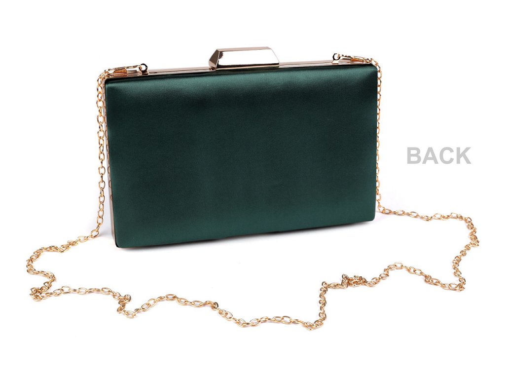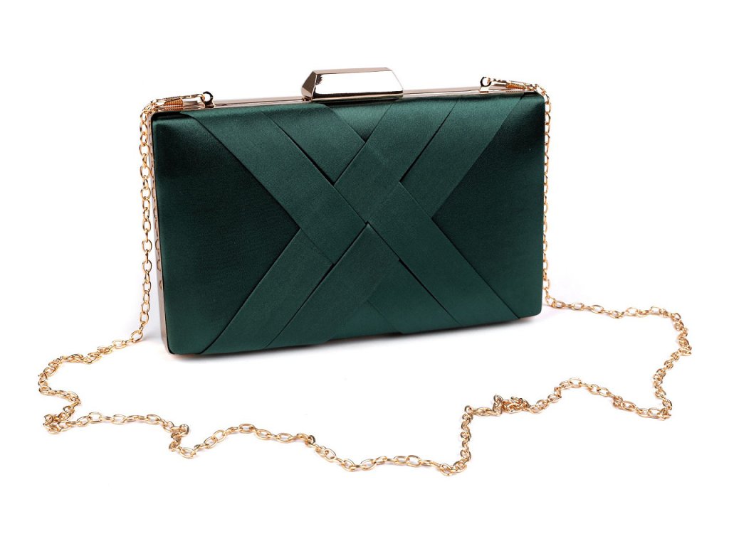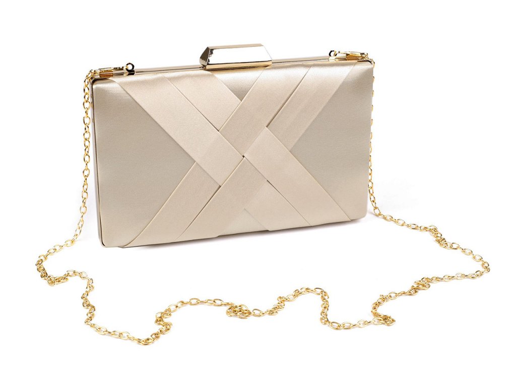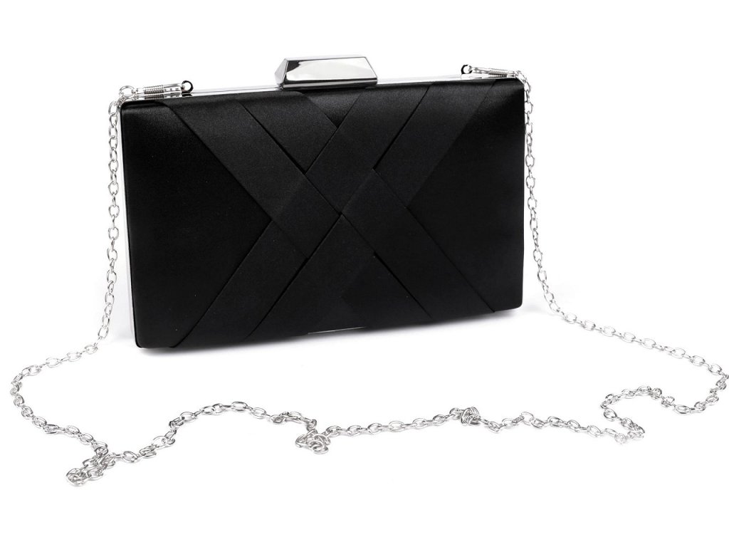 Společenská saténová kabelka vyzařuje eleganci a luxus. Na přední straně je ozdobená zkříženou aplikací. Kabelka má po celém obvodu kovový rámeček. Je pevně vyztužená, její součástí je dlouhý odnímatelný řetízek na karabiny.- Rozměry (ŠxVxH): 20 x 12 x 4 cm