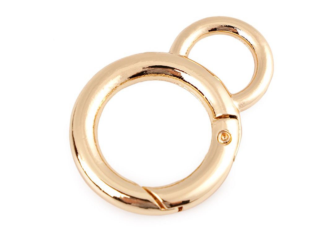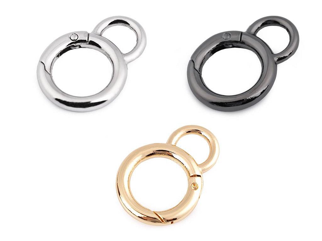 Kovová karabina ve tvaru kroužku se stane jednoduchým a efektním řešením, umožňující jednoduché sepnutí klíčenek a různých ozdob ke kabelkám, batohům, taškám apod.