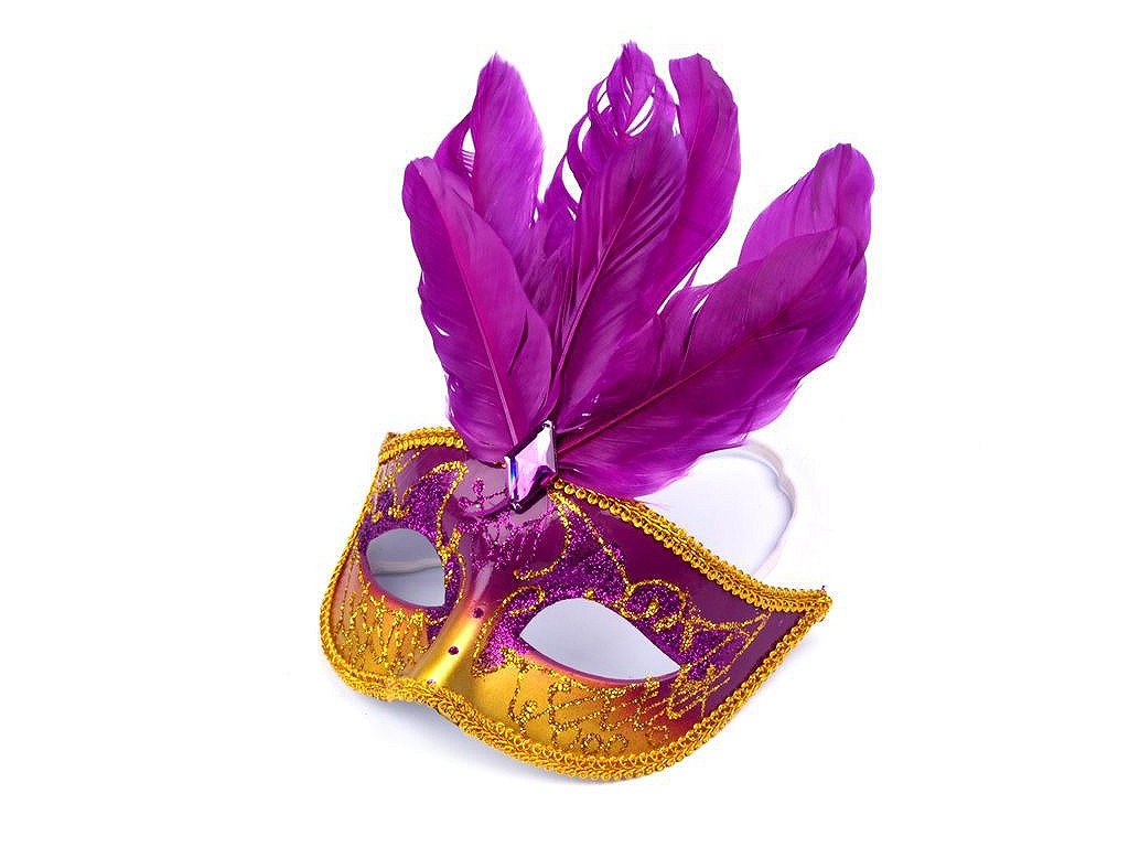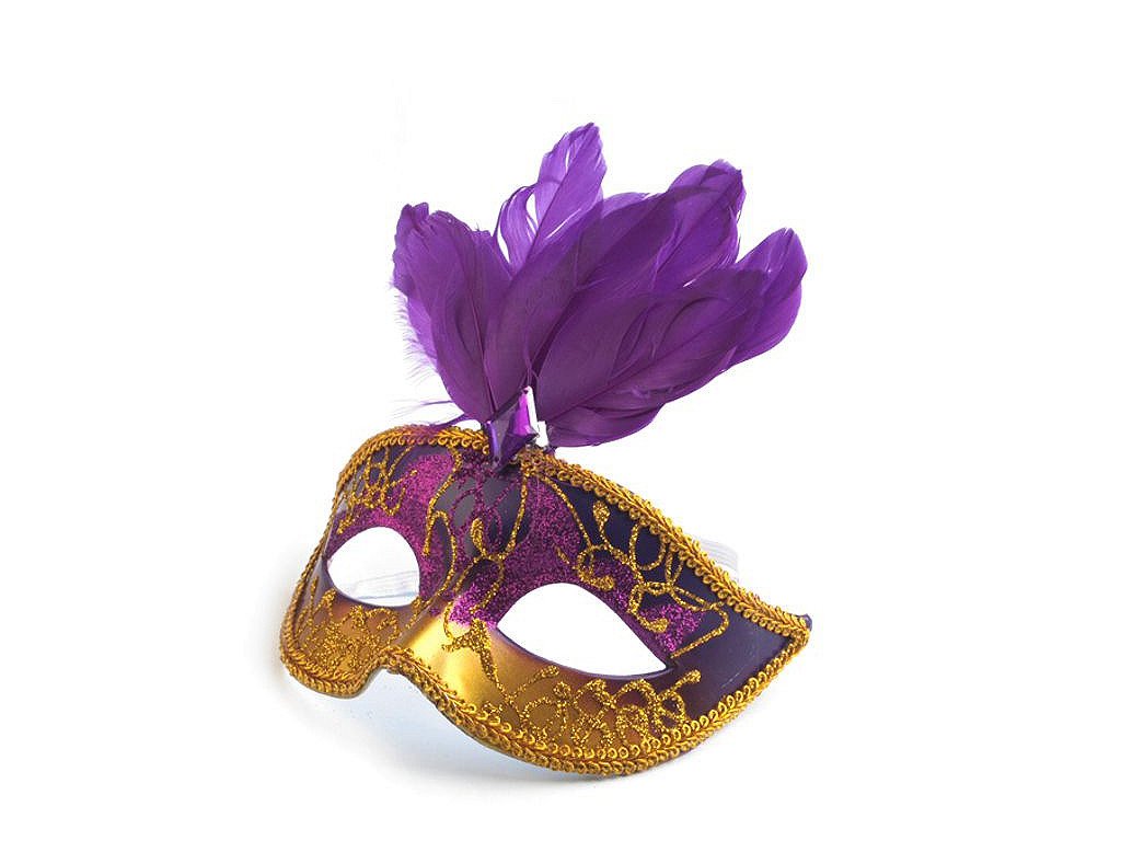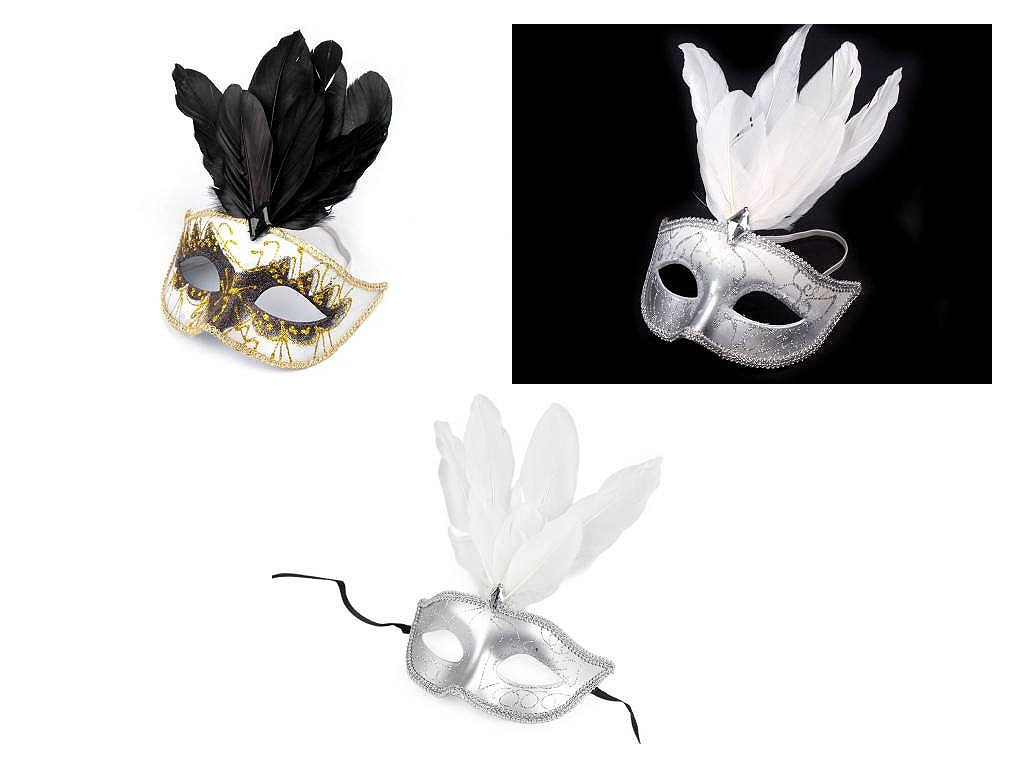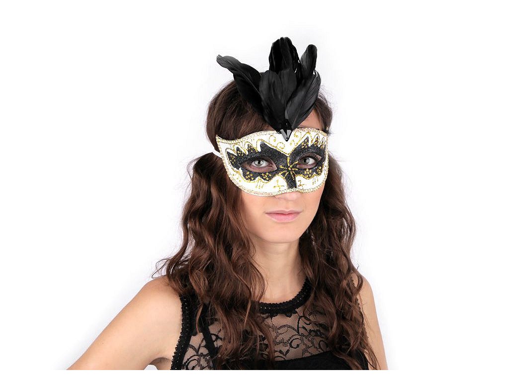 Karnevalová škraboška vám dodá tajemný a svůdný vzhled na večírcích, plesech, párty, karnevalu apod. Škraboška je místy pokrytá třpytivými glitry a doplněná broušeným kamenem a peřím. Na obličeji perfektně drží díky pružence. Varianta č. 8 se zavazuje pomocí stuhy.- Šířka: 16 cm