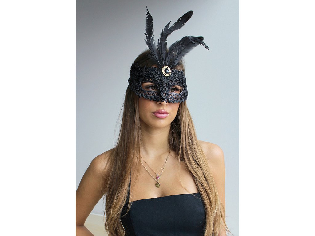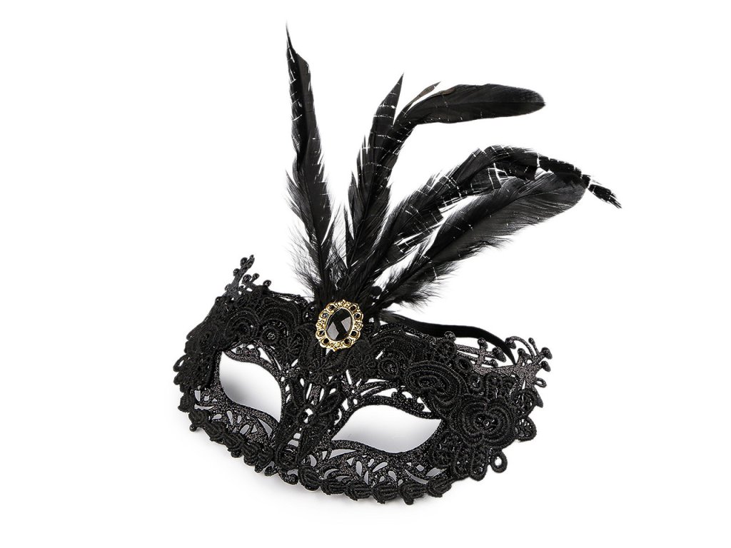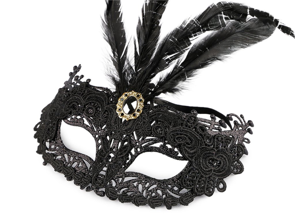 Karnevalová maska - škraboška krajková s peřím