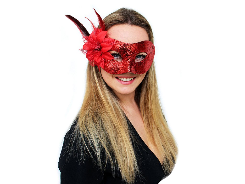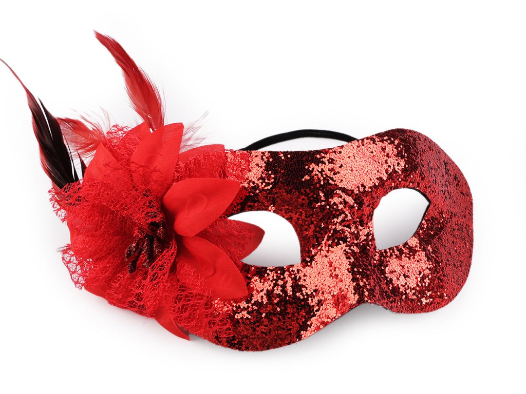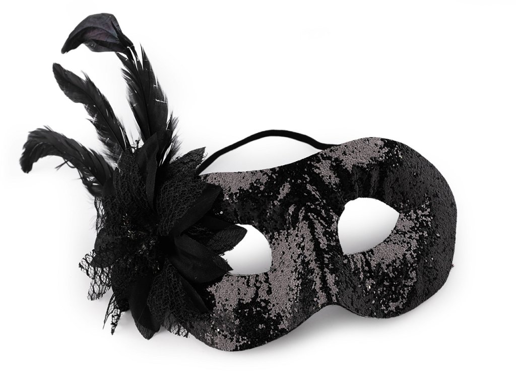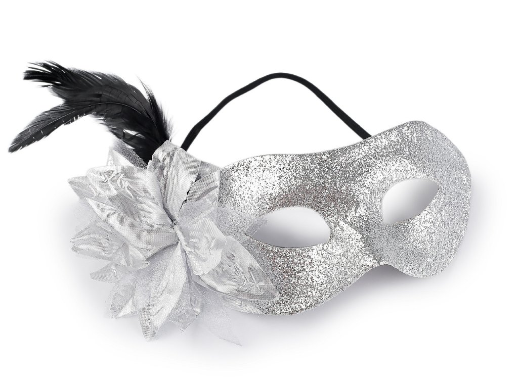 Karnevalová škraboška vám dodá tajemný a svůdný vzhled. Využijete ji na různé večírky, párty, karneval apod. Škraboška je celá pokrytá třpytivými glitry. Její bok zdobí textilní květ a peří. Na obličeji perfektně drží díky pružence.- Šířka: 19 cm
