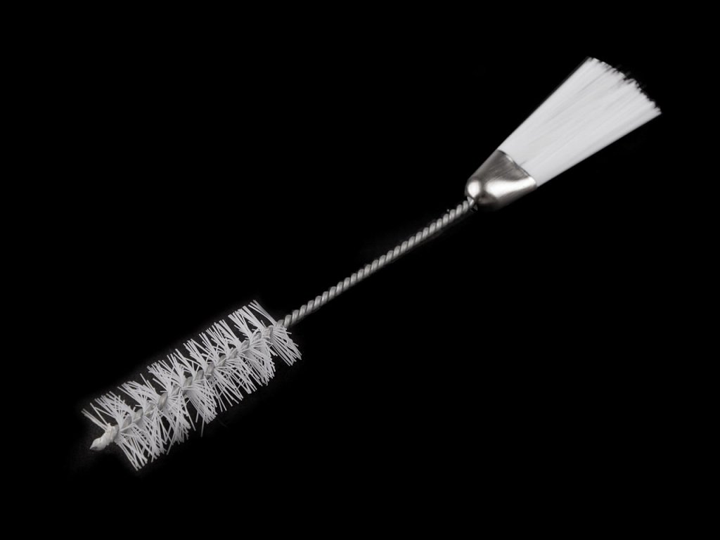 Oboustranný kartáček je nepostradatelným společníkem při šití. Jeho nylonové štětinky si hravě poradí s prachem a dalšími nečistotami uvnitř šicího stroje.- Délka: 15 cm