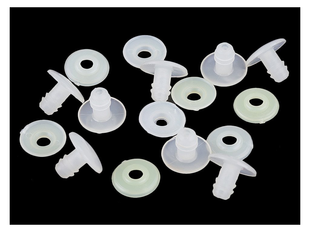 Bezpečnostní klouby použijete na plyšové, háčkované a jinak vyrobené zvířátka a postavičky. Slouží k upevnění končetin. Část s vrutem se propíchne končetinou, následně se vpíchne do těla a tam se z druhé strany upevní nacvaknutím pojistky. Končetina se tak bezpečně přichytí bez šití a zůstane pohyblivá (otáčivá). Balení obsahuje vruty i pojistky. Délka vrutu je cca 1,3 cm.- Průměr: 20 mm