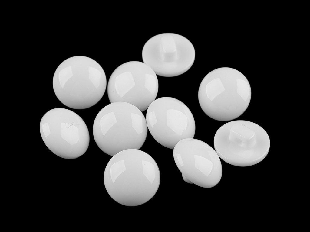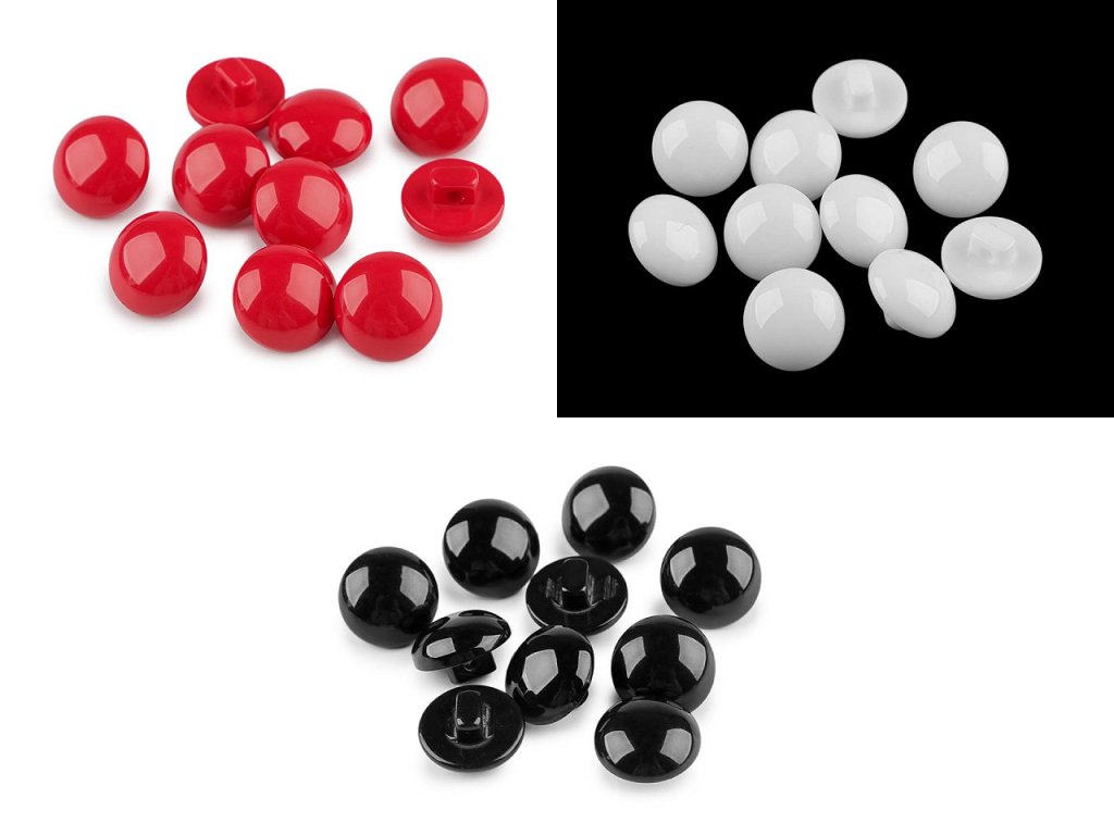 Plastové knoflíky mají spodní přišívání a polokulatou hlavičku. Jsou vhodné na halenky, šaty, svetry, kabátky apod., ale také je můžete použít jako oči loutek a různých postaviček.