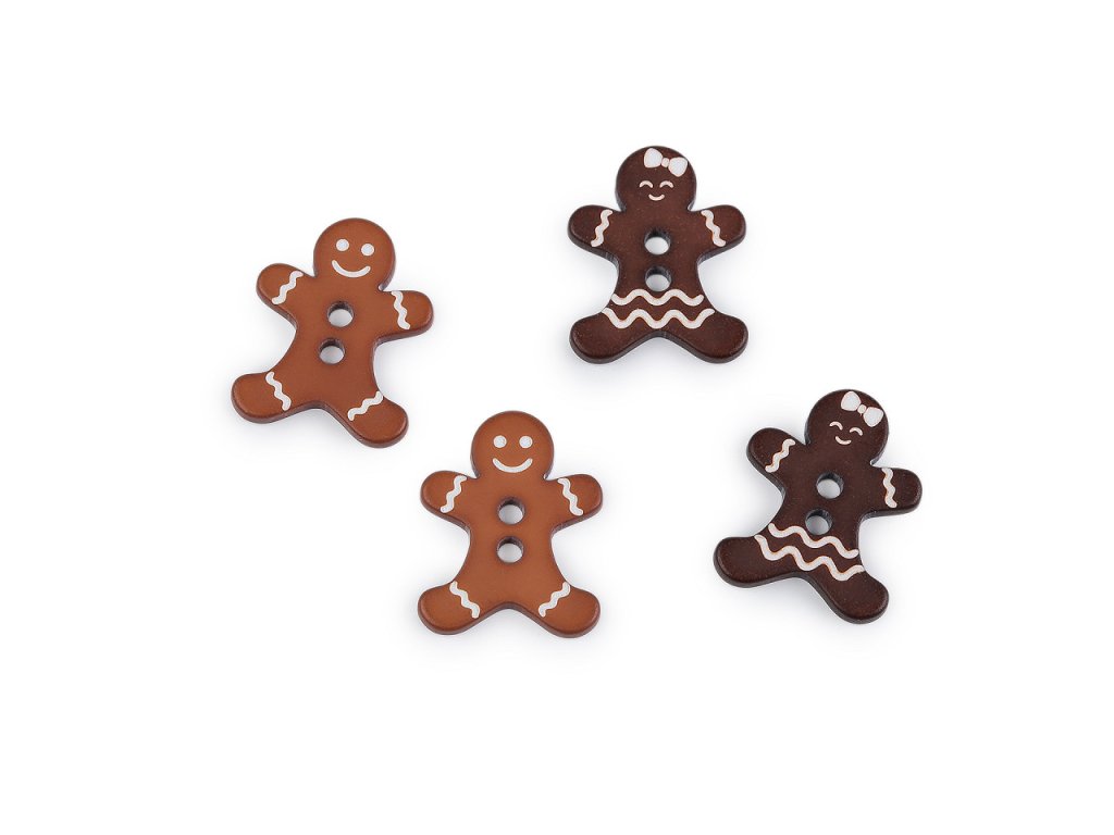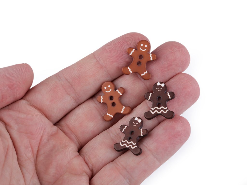 Roztomilé dekorační knoflíky věrohodně imitují perníčky. Vyniknou na vánočních dárcích, přáníčkách, věncích i v květinové vazbě. Můžete je našívat i lepit. Design je jednostranný.- Šířka: 16 mm