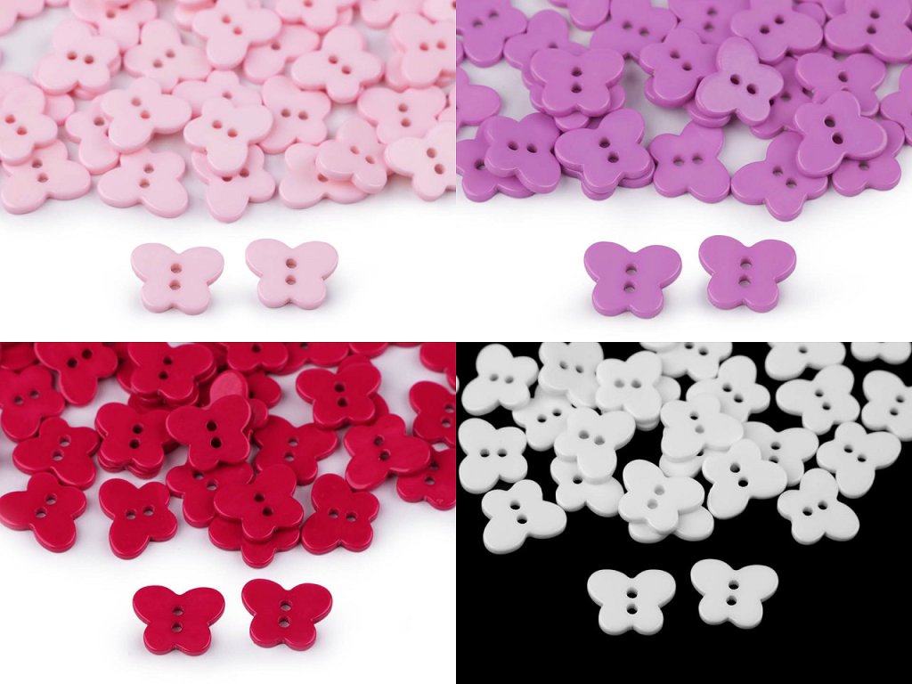 Knoflíky ve tvaru motýla využijete nejen na dětské oděvy, ale také jimi můžete zkrášlit doplňky jako jsou tašky, čepice, rukavice apod. Jsou vhodné také jako ozdoba k nalepení na foto rámečky, alba, deníky, přáníčka, pozvánky, ale i k výrobě šitých knih (quiet book). Velikost knoflíků naleznete v této tabulce.- Rozměry: 13 x 16 mm