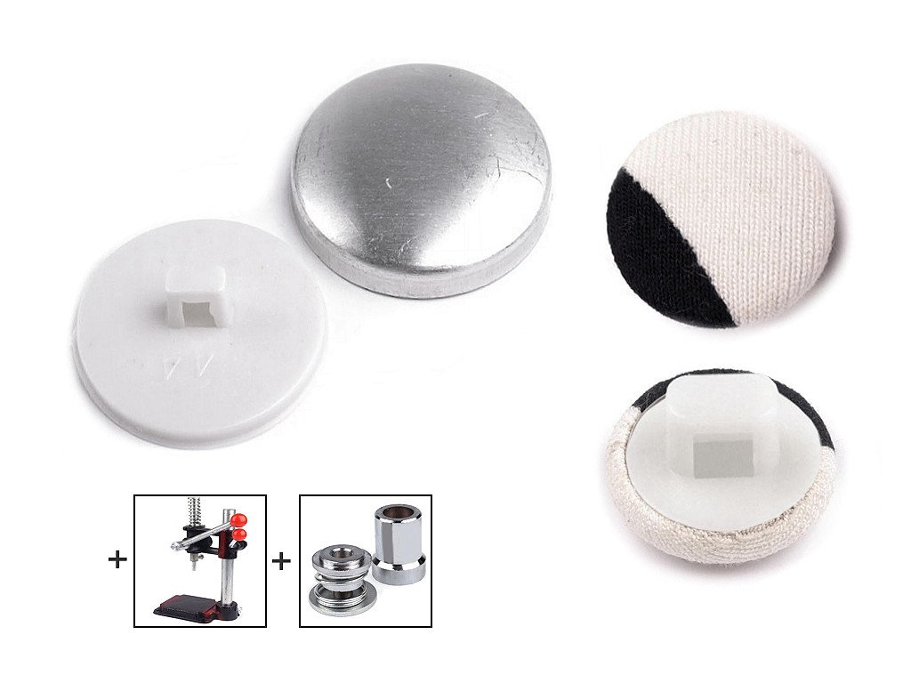 Knoflík na potahování se skládá ze dvou částí - kovové a plastové. K potažení můžete zvolit různé materiály. Potažené knoflíky skvěle ozdobí vaše halenky, šaty, saka apod. K potahování je potřeba lis a piston v dané velikosti, který najdete pod kódem 090859. Velikostní tabulka knoflíků:- Velikost: 44"