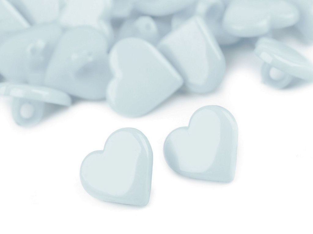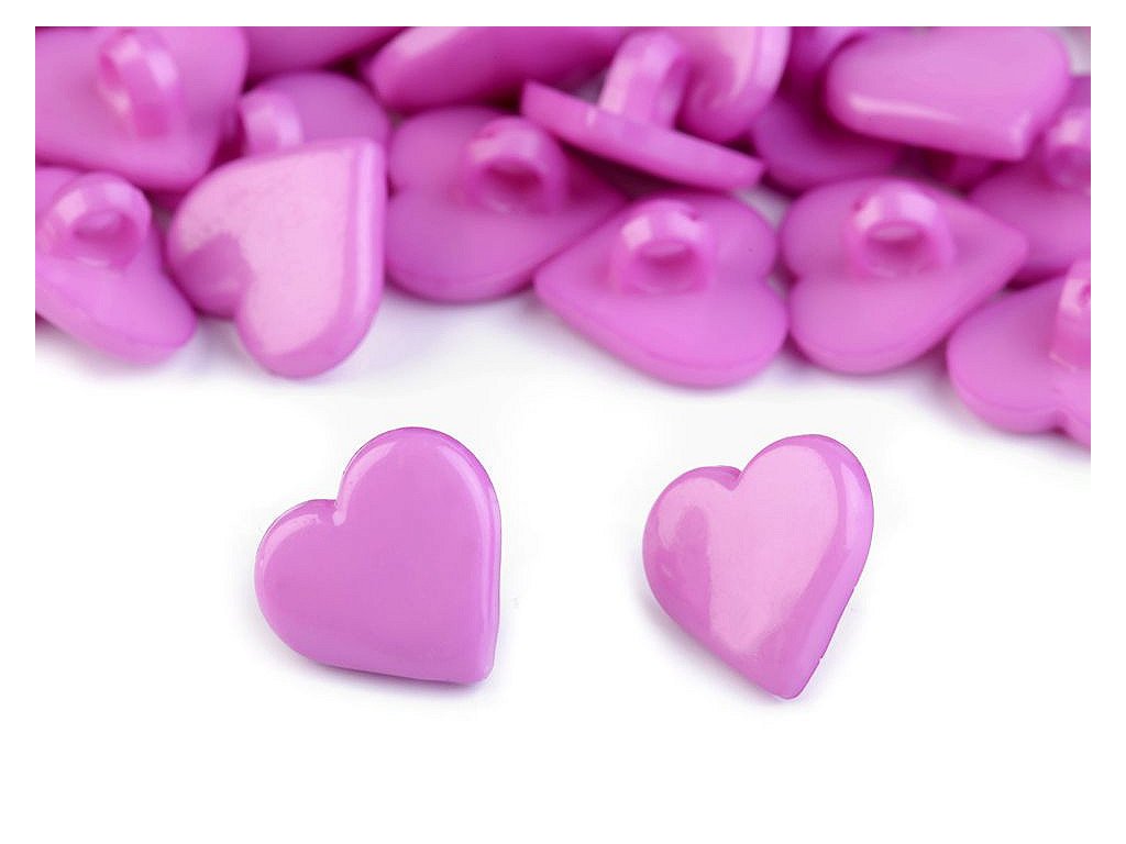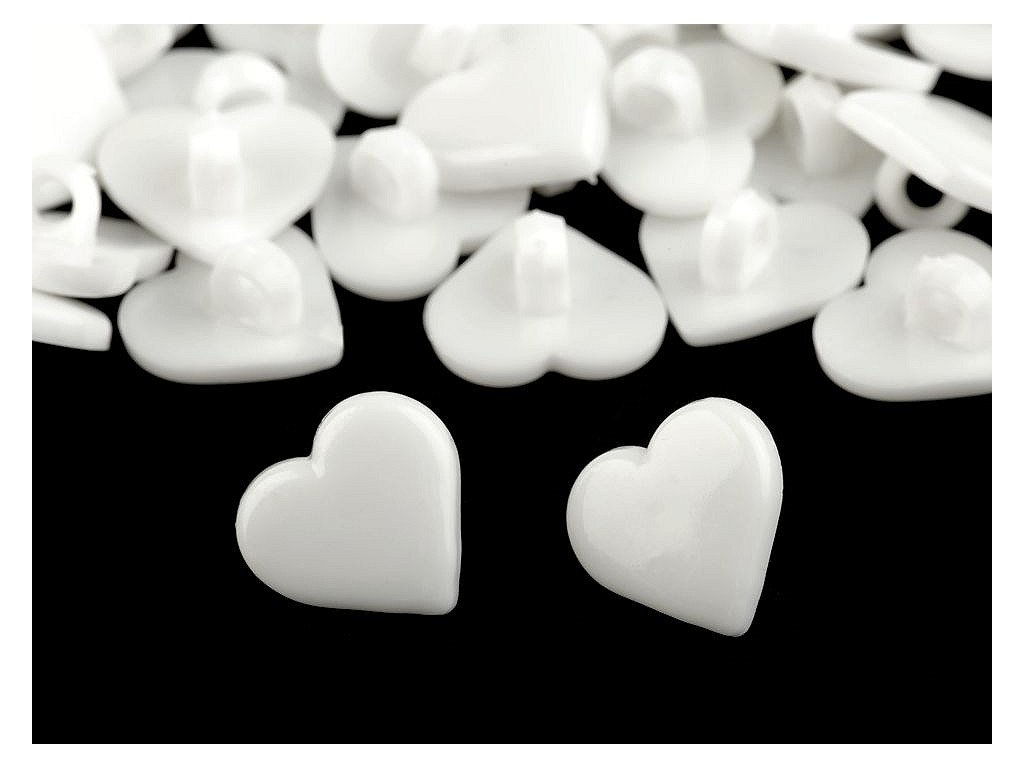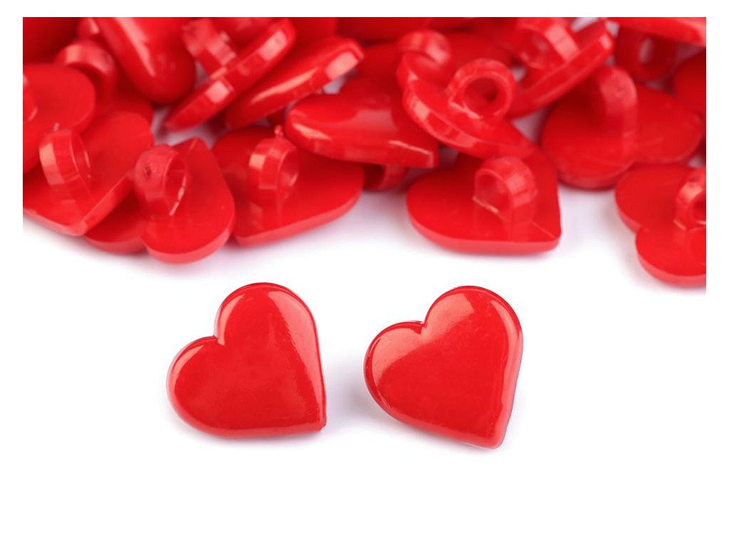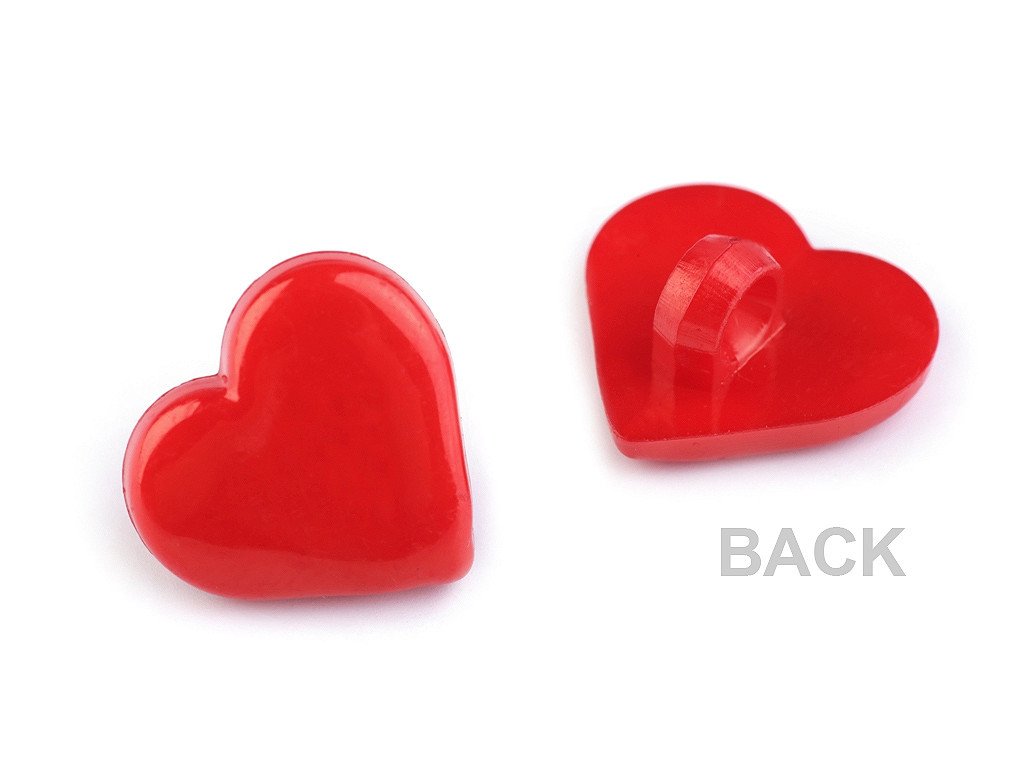 Plastové knoflíky upoutají pozornost svým srdíčkovým tvarem. Mají spodní přišívání. Můžete je našít na dívčí halenky, šaty, svetry apod. Vyniknou i jako dekorace tašek, pytlíků či kapsářů. Knoflíky jsou baleny v sáčku.Velikost knoflíků naleznete v této tabulce.- Průměr: 15,2 mm