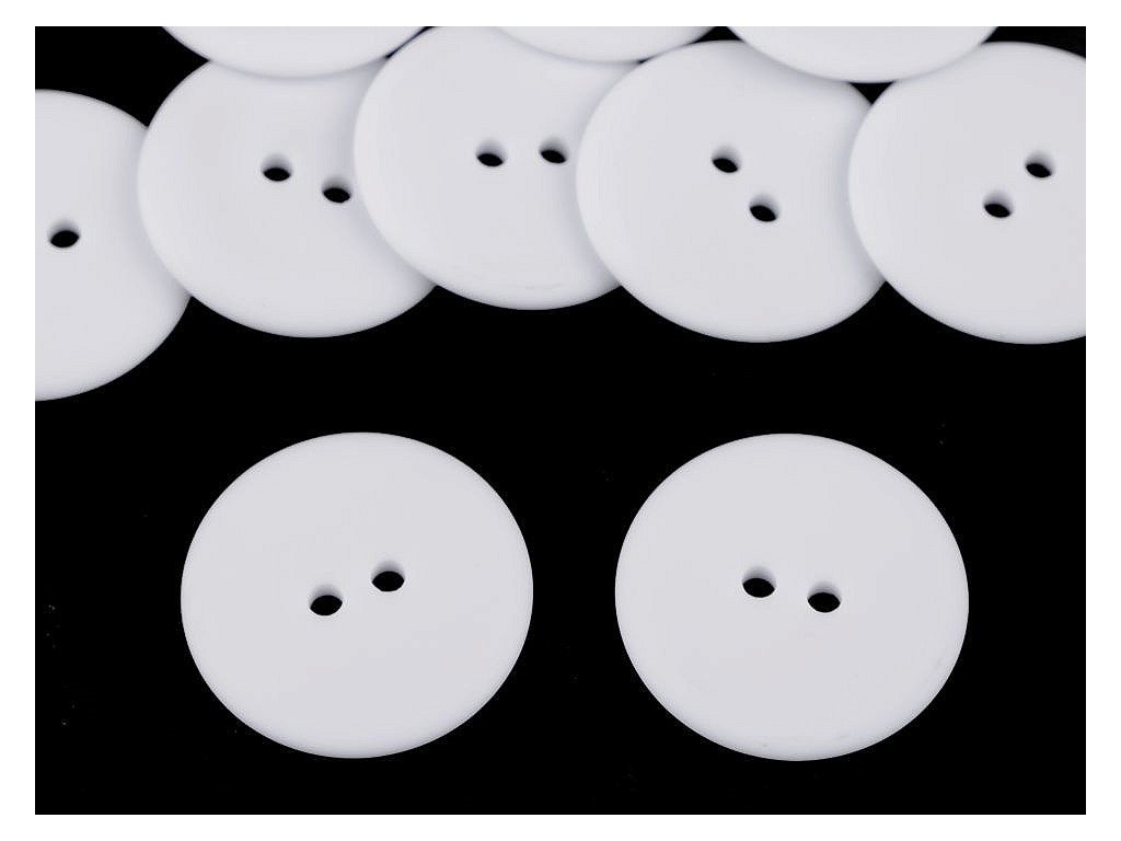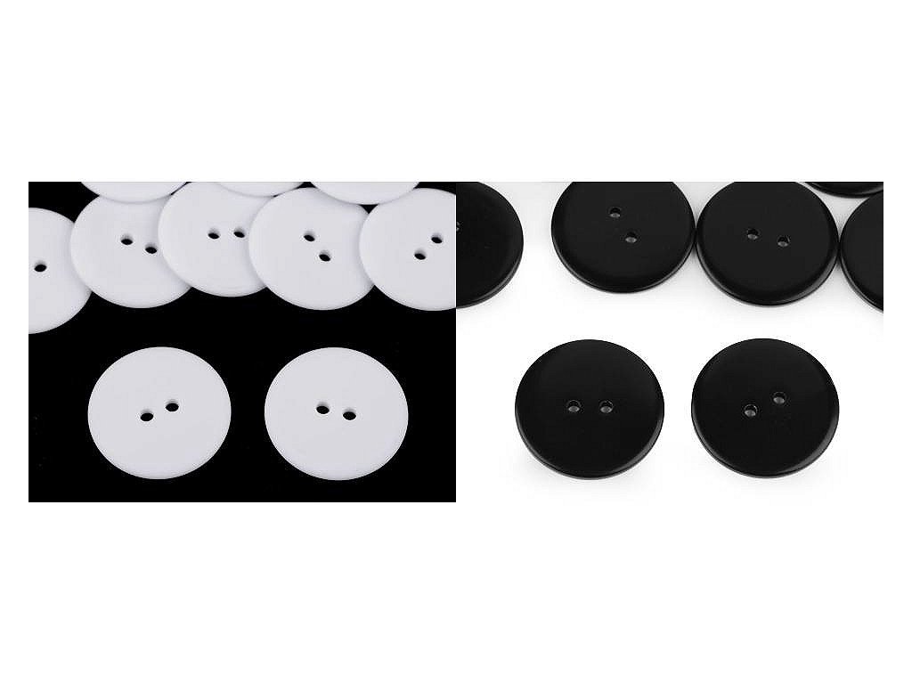 Plastové knoflíky mají obě strany hladké. Jsou vhodné k našití nejen na oděvy, ale také jimi můžete ozdobit doplňky jako jsou klobouky, rukavice, tašky apod. Hodí se i jako ozdoba k nalepení na foto rámečky, alba, deníky, apod. Knoflíky jsou baleny v sáčku. Velikost knoflíků naleznete v této tabulce. Varianta č. 13 je lesklá.- Průměr: 30,5 mm