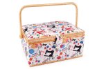 Košík na šicí potřeby s motivem koček nadchne nejen švadleny a pletařky, ale i další kreativní nadšence. Do čalouněného košíku se vejde plno...
