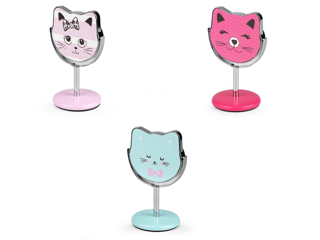 Stolní kosmetické zrcátko s designem kočky postavíte na stůl i parapet okna, kde je denní světlo nejlepší. Hodí se pro kontrolu a opravu make-upu, úpravu obočí apod. Úhel sklonu si můžete nastavit bez omezení. Má kvalitní zpracování z eko kůže. Náš tip: zrcátko bude krásným milým dárkem pro kamarádku.- Šířka: 9 cm