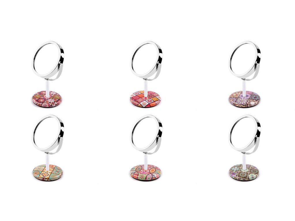 Stolní kosmetické zrcátko si postavíte na stůl i parapet okna, kde je denní světlo nejlepší. Vzadu má potisk mandal, hodí se pro kontrolu a opravu make-upu, úpravu obočí apod. Úhel sklonu si můžete nastavit bez omezení. Má kvalitní zpracování z eko kůže, zadní obrázek je dozdobený třpytivými broušenými kamínky. Náš tip: zrcátko bude krásným milým dárkem pro kamarádku.- Šířka: 9 cm