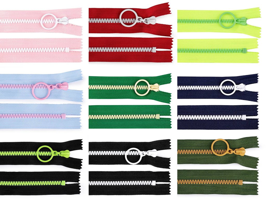 Nedělitelný kostěný zip je vhodný na mikiny, trička, menší tašky či pouzdra. Jezdec a zoubky vynikají jiným zabarvením než samotný zip.- Šířka zubů: 5,6 mm