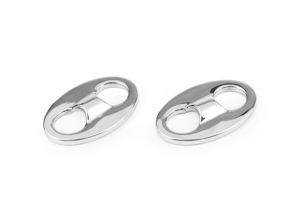 Kovové brzdičky jsou nejen ozdobnou, ale i praktickou součástí oděvů. S jejich pomocí snadno utáhnete kapuci, bundu či šaty v pase, nebo upravíte délku spodního lemu bundy či kabátku. Brzdičky v sobě mají dvě dírky o průměru 8 mm.- Rozměry: 18 x 28 mm