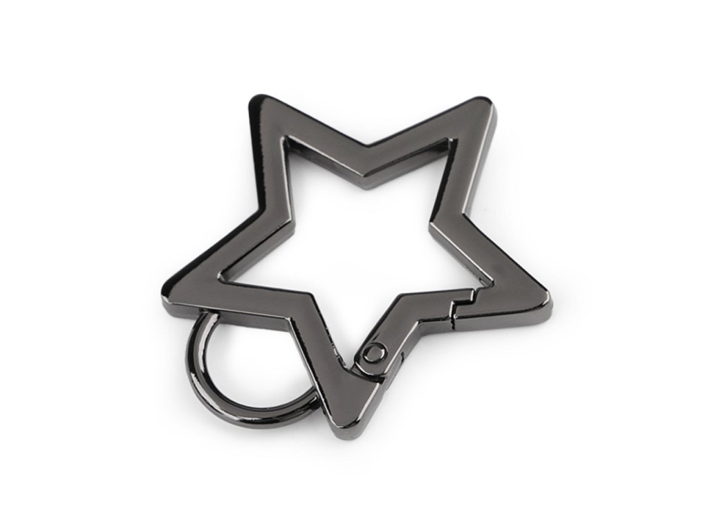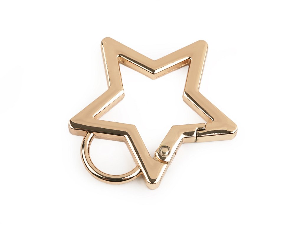 Designová kovová karabina hvězda vynikne na kabelkách, městských batozích, ale i jako elegantní klíčenka.- Rozměry celkem: 42 x 46 mm