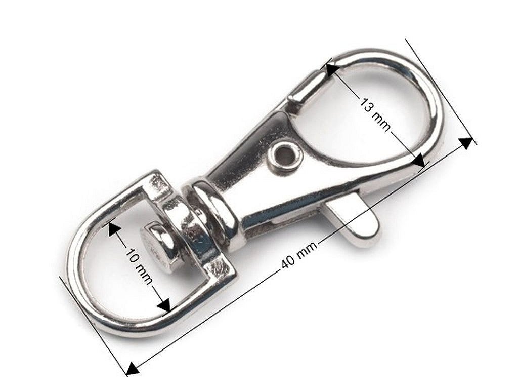 Kovovou otočnou karabinku využijete k výrobě klíčenek a připevnění popruhů na menší tašky nebo kabelky. Karabinka je složena z nemagnetického kovu, magnetické je pouze kolečko uprostřed. Rozměry viz foto. Rozměry č. 4 jsou 13 x 37 mm.- Rozměry celkem: 13 x 40 mm