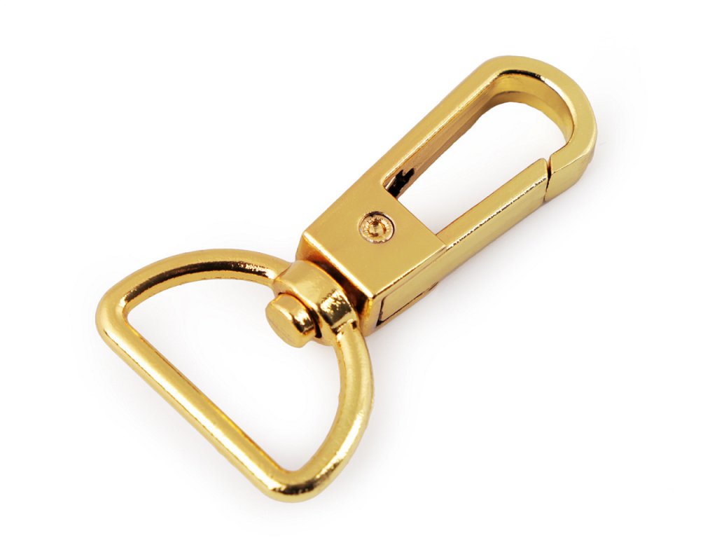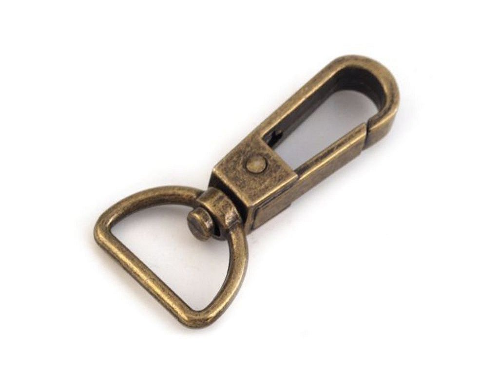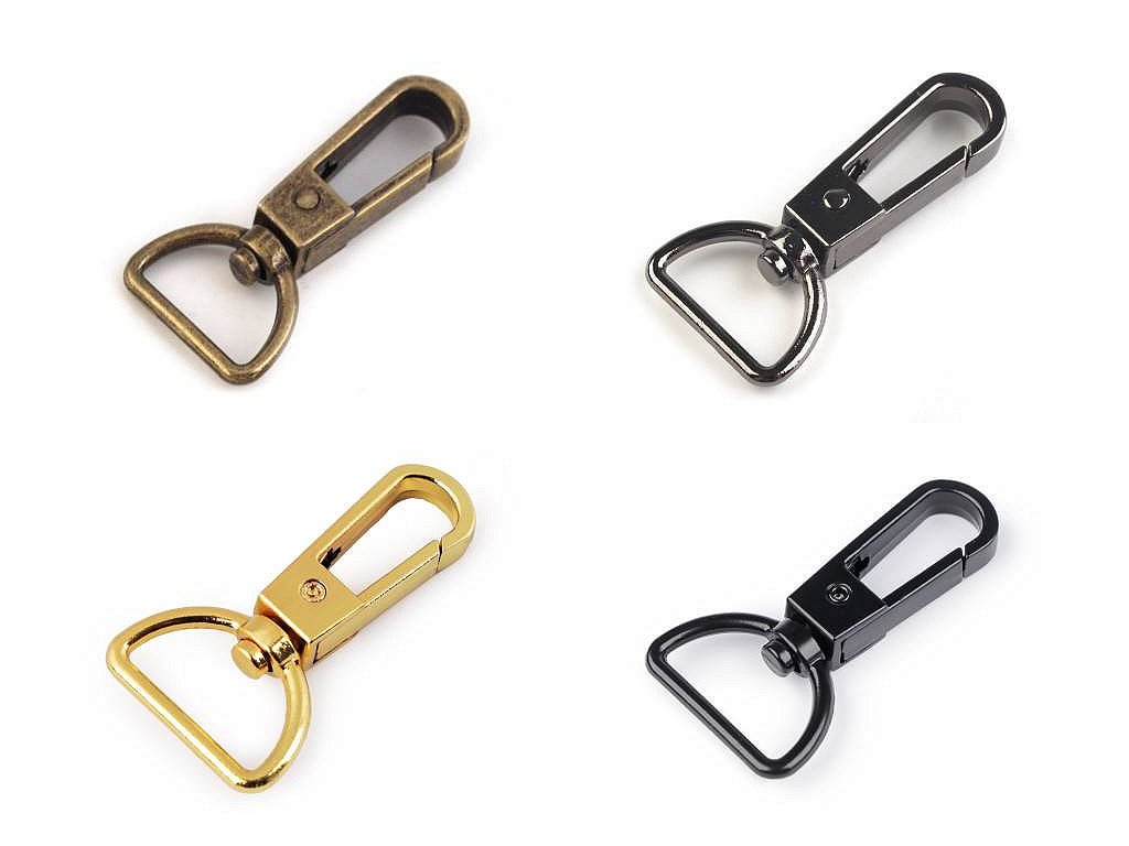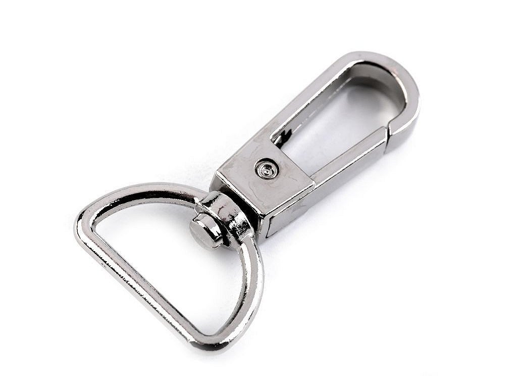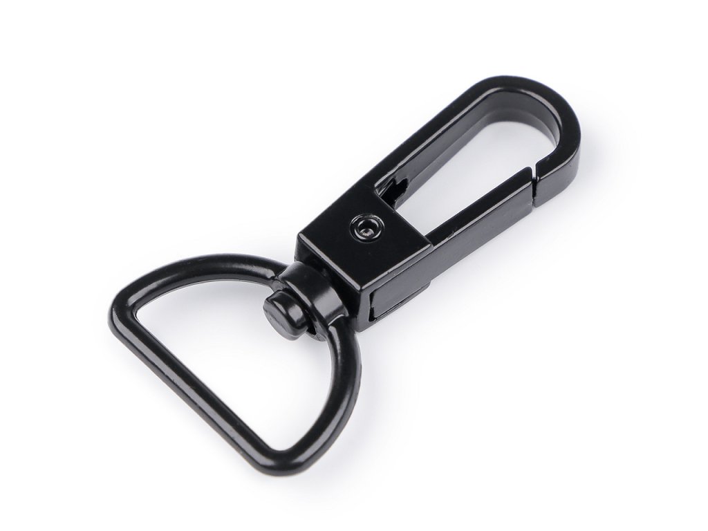 Kovová karabina je otočná. Využijete ji k výrobě klíčenek, vodítek pro psy nebo k připevnění popruhů na tašky a kabelky. Karabina je složena z nemagnetického kovu, magnetické je pouze kolečko uprostřed. Karabina je vhodná na popruh o šíři 15 mm.- Rozměry celkem: 25 x 45 mm