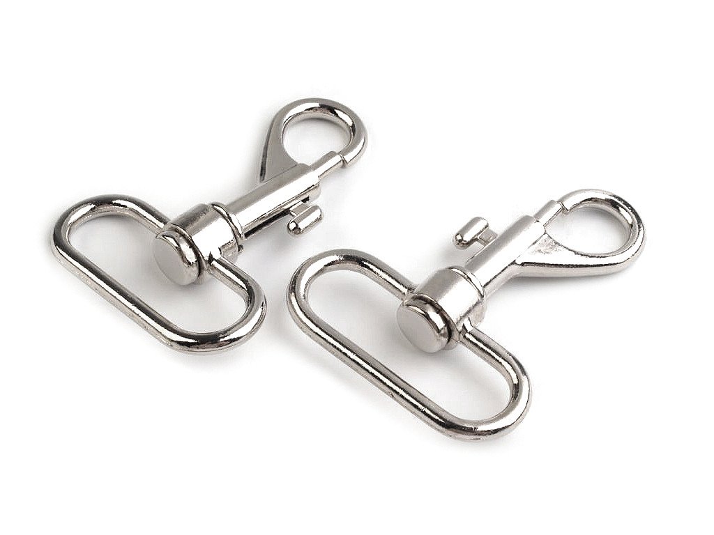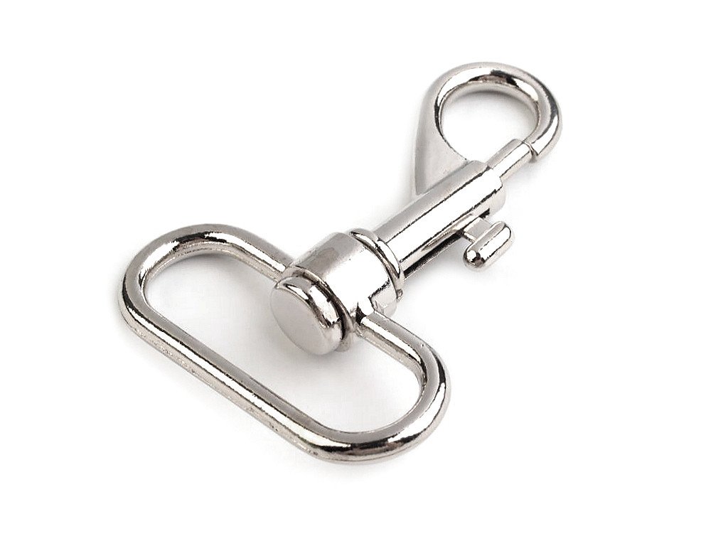 Kovovou otočnou karabinu vyžijete na upevnění popruhů k taškám či kabelkám. Díky své velikosti je vhodná také na výrobu vodítek pro psy. Karabina je z nemagnetického kovu, magnetické je pouze kolečko ve spodní části. Karabina je vhodná na popruh o šíři 30 mm.- Rozměry celkem: 44 x 59 mm