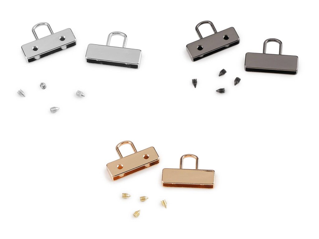 Koncovka na popruhy má vysoký lesk. Přilepíte do ní konec popruhu či jiného materiálu (s tloušťkou do 3 mm), který následně uchytíte přiloženými šroubky. Koncovky se hodí na výrobu uch ke kabelkám, psaníčkům a taškám. Můžete je také využít na ozdobné střapce, designové opasky apod. Rozměry šroubku jsou 2,7 x 4,4 mm.- Rozměry: 27 x 19 mm