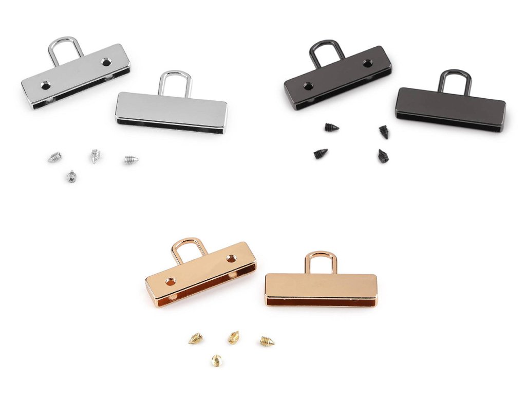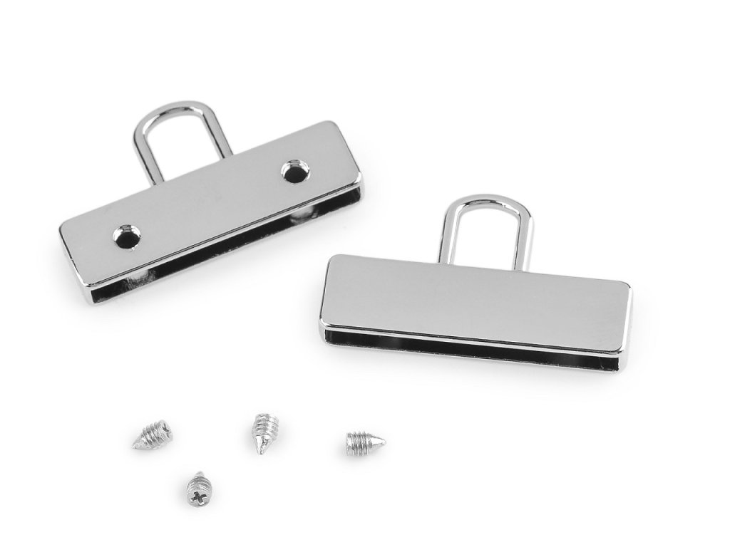 Koncovka na popruhy má vysoký lesk. Přilepíte do ní konec popruhu či jiného materiálu (s tloušťkou do 3 mm), který následně uchytíte přiloženými šroubky. Koncovky se hodí na výrobu uch ke kabelkám, psaníčkům a taškám. Můžete je také využít na ozdobné střapce, designové opasky apod. Rozměry šroubku jsou 2,7 x 4,2 mm.- Rozměry: 34 x 20 mm