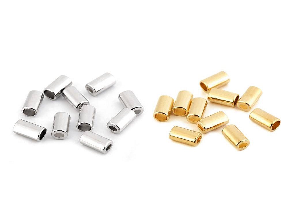 Hladká kovová koncovka oválného tvaru zabraňuje vytažení šnůry z tunýlku. Využijete ji k zakončení šňůrek, které lemují rukávy, kapuce nebo spodní lem mikin a bund. Upozorňujeme zákazníky, že na jedné straně je menší průvlek - 2 x 4 mm, z druhé strany je průvlek větší - 4 x 6 mm.- Rozměry: 8 x 14 mm