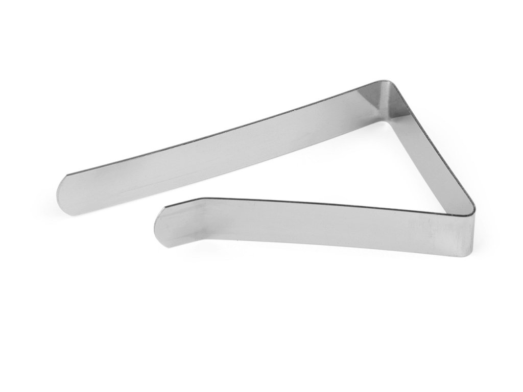 Kovová spona na ubrus se používá k připevnění ubrusu ke stolu tak, aby zabránila posouvání nebo sklouznutí ubrusu i všeho, co je na něm. Oceníte ji nejen za větrného počasí při posezení na terase či zahradě, ale také v domácnosti s dětmi. Použít ji můžete na stůl s tloušťkou až 3 cm. Je dostatečně pevná a zároveň ohebná.- Rozměry: 42 x 75 mm