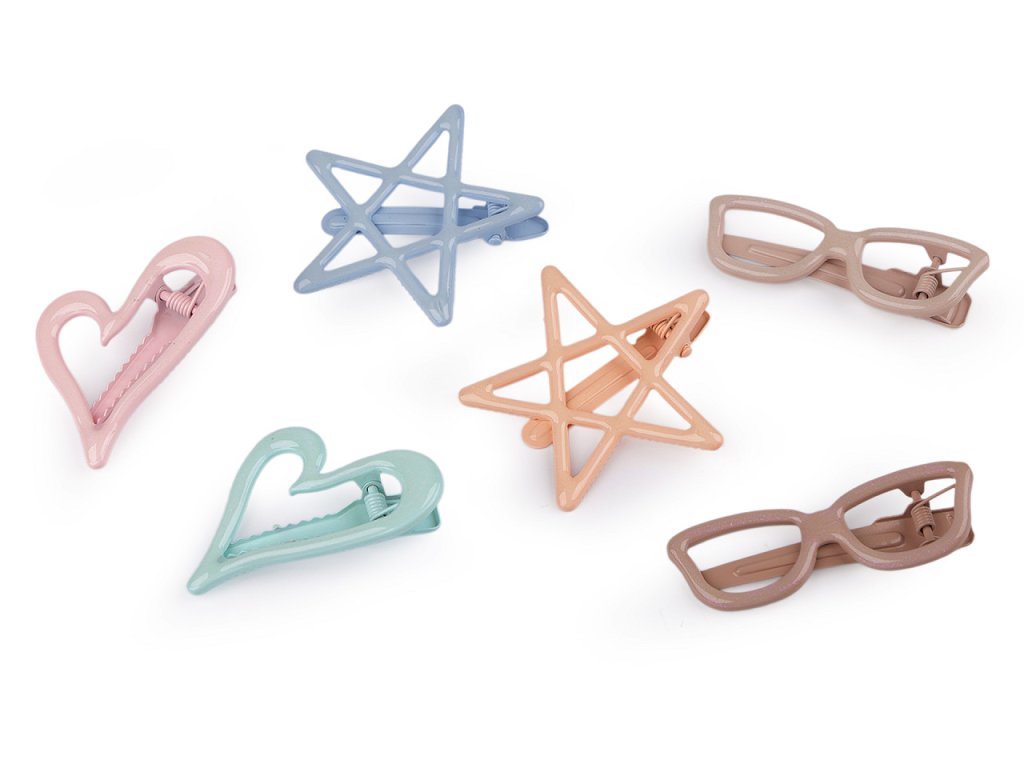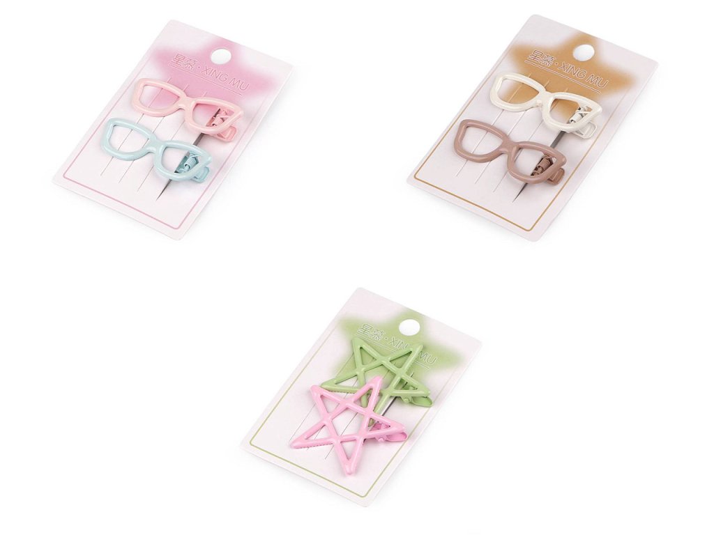 Kovové sponky do vlasů srdce, hvězdy, brýle