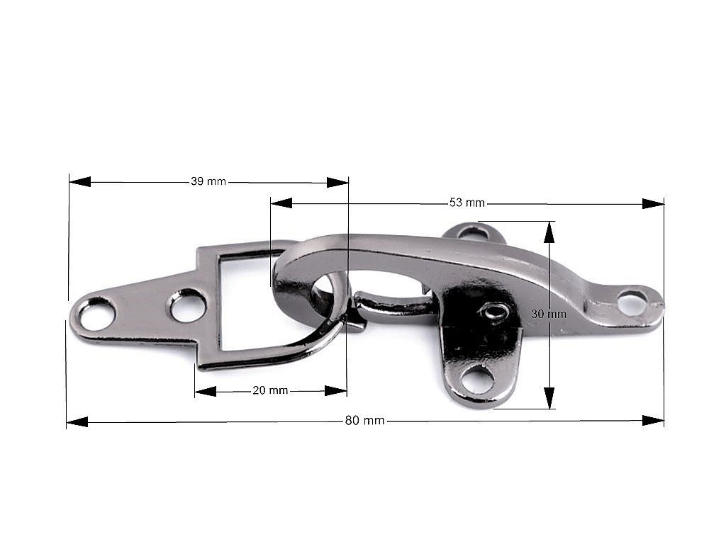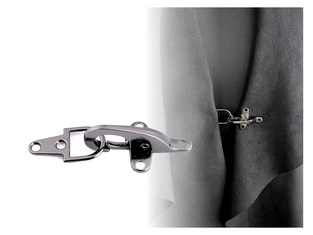 Kovovou karabinu využijete jako zapínání na kabáty, bundy, vesty nebo kardigany. Je vhodná i na kabelky nebo jako zapínání pro motocyklisty. Průměr dírek je 4 mm. Vhodné nýty najdete pod kódem 060959 a 060003.- Rozměry: 30 x 80 mm