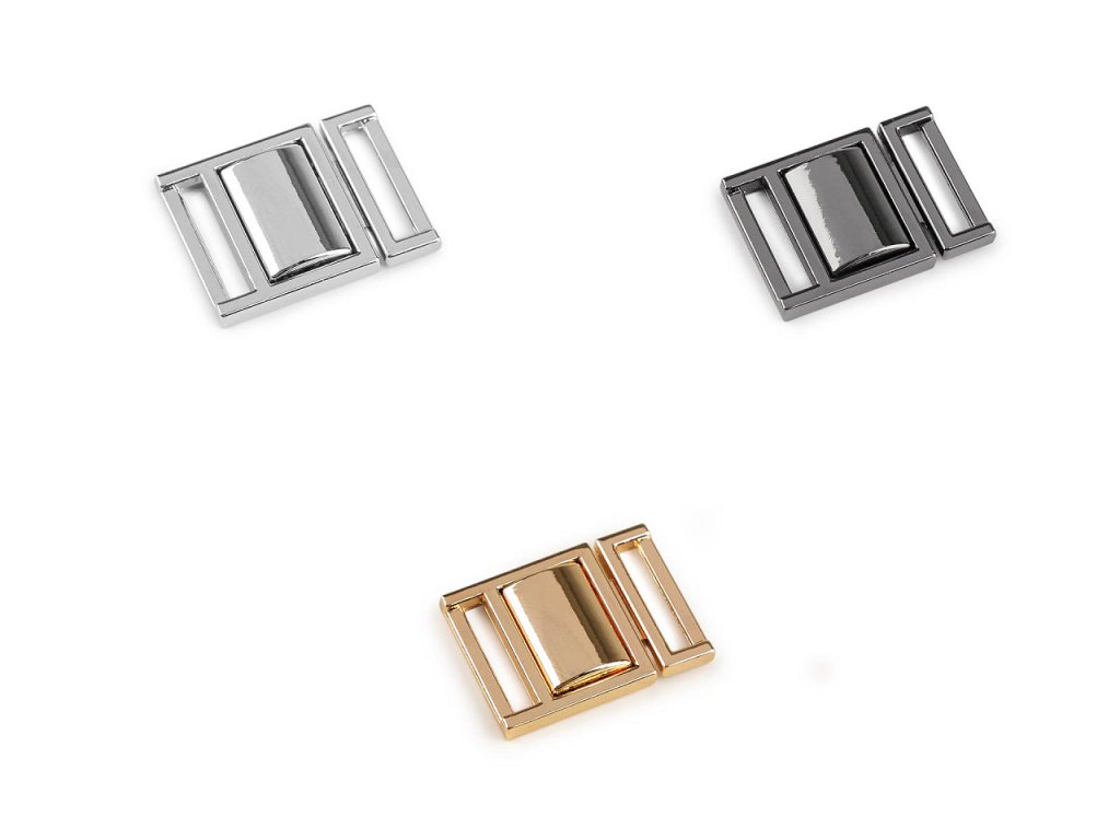 Kovová mini spona se skládá ze dvou částí, které do sebe provlečete a zacvaknete. Je vhodná na výrobu tenkých pásků k šatům, halenkám apod.- Rozměry: 28 x 21 mm