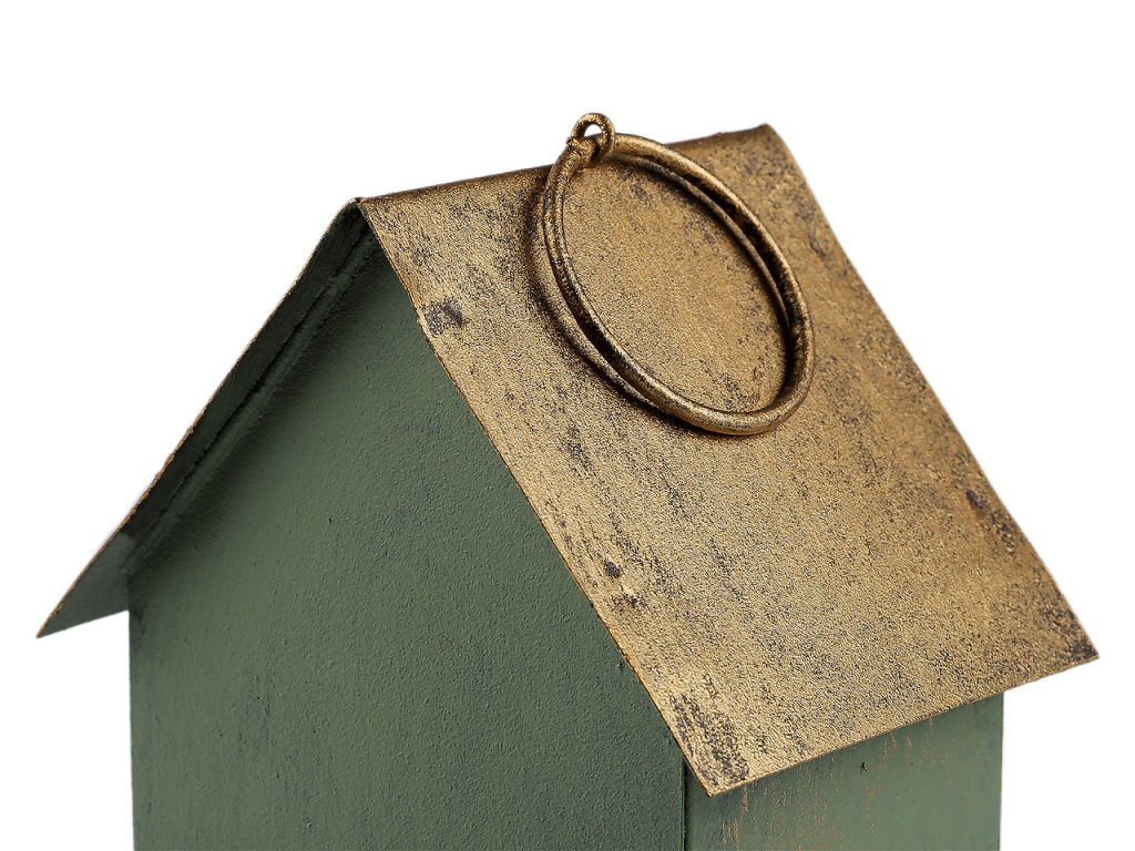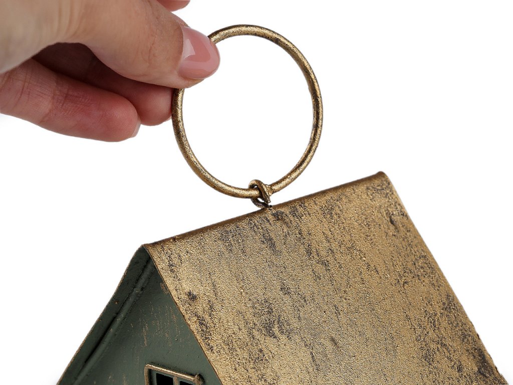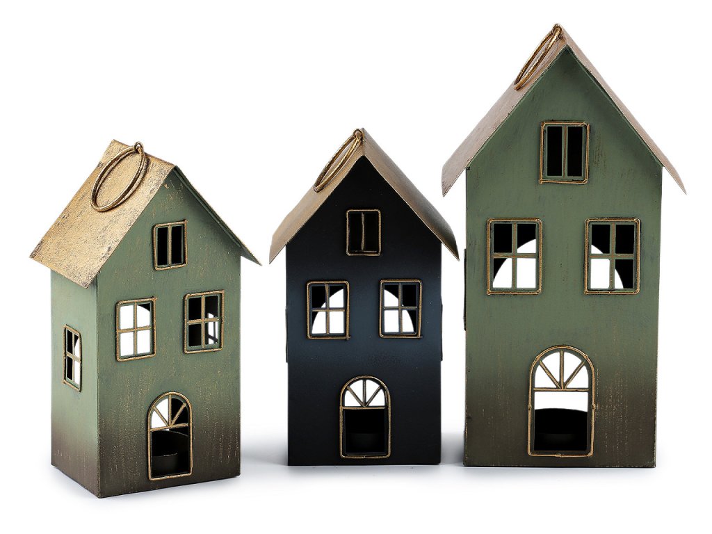 Kovový domeček nádherně rozzáří jakýkoliv interiér a vytvoří v něm příjemnou atmosféru. Vleze se do něj svíčka s průměrem až 5 cm. Je stabilní a na povrchu má jemnou patinu. Vyniká nejen svou jedinečností, ale i vysokou kvalitou. Domeček můžete postavit na stůl či poličku, ale díky očku ho můžete i pověsit. Vynikne i v kombinaci se stromečkem, který je v podobném designu.- Rozměry: č. 1 a 2: 10 x 7,5 cm