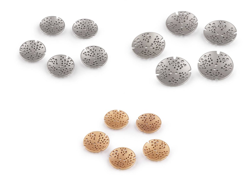 Kovové knoflíky s děrovaným designem vyniknou na kabátech, sakách, bundách nebo kardiganech. Jsou kvalitní, lehce vypouklé a na oděvech upoutají pozornost. Velikost knoflíků naleznete v této tabulce.- Průměr: 20; 30 mm