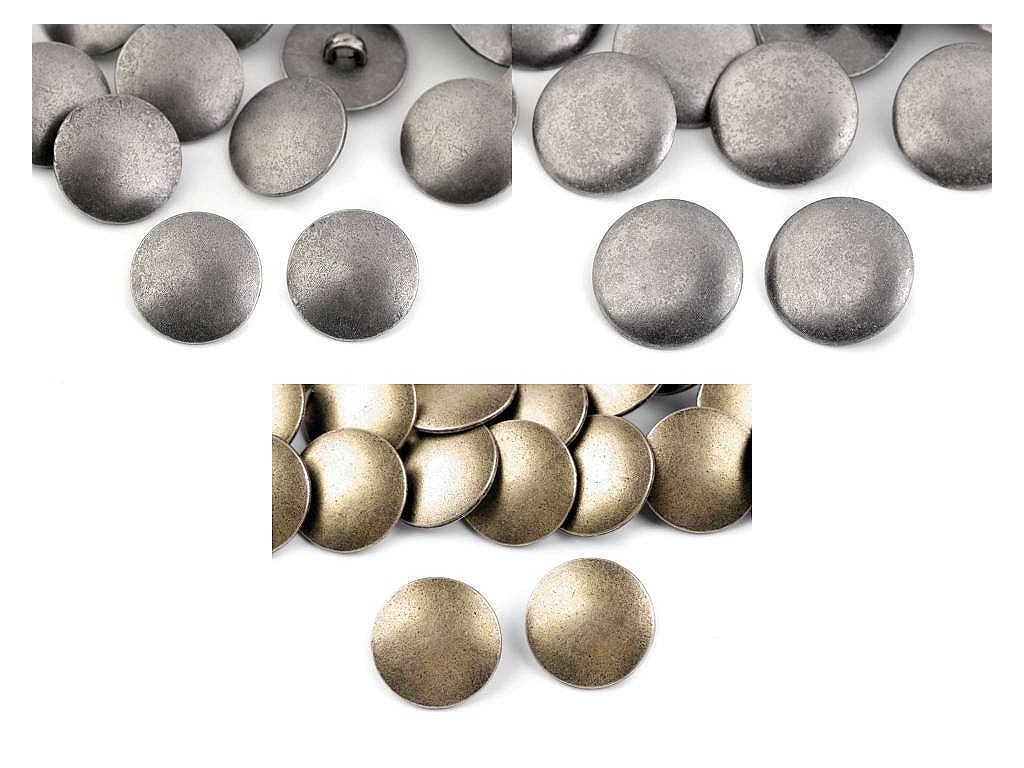 Ploché kovové knoflíky se spodním přišíváním jsou vyrobené z nemagnetického kovu. Jsou vhodné k našití na saka, kabáty, svetry apod. Můžete je také použít na doplňky jako jsou kabelky, tašky nebo batohy. Knoflíky jsou baleny v sáčku.Velikost knoflíků naleznete v této tabulce.- Průměr: 15; 19; 20 mm