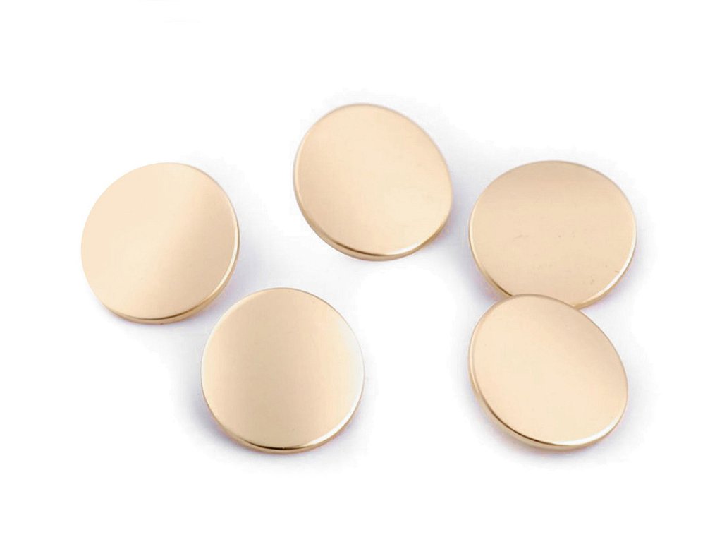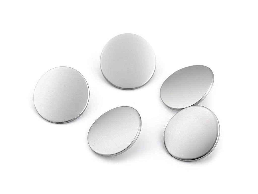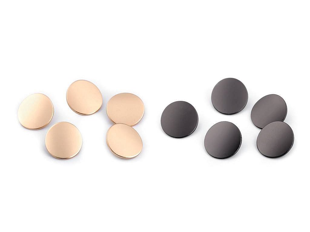Matné kovové knoflíky se spodním přišíváním využijete k našití na saka, kabátky, svetry apod. Jsou tenké a mají nízkou hmotnost. Knoflíky jsou balené v sáčku, kde je každý z nich ještě zvlášť zabalený v papíře.Velikost knoflíků naleznete v této tabulce.- Průměr: 17,8; 19,8 mm