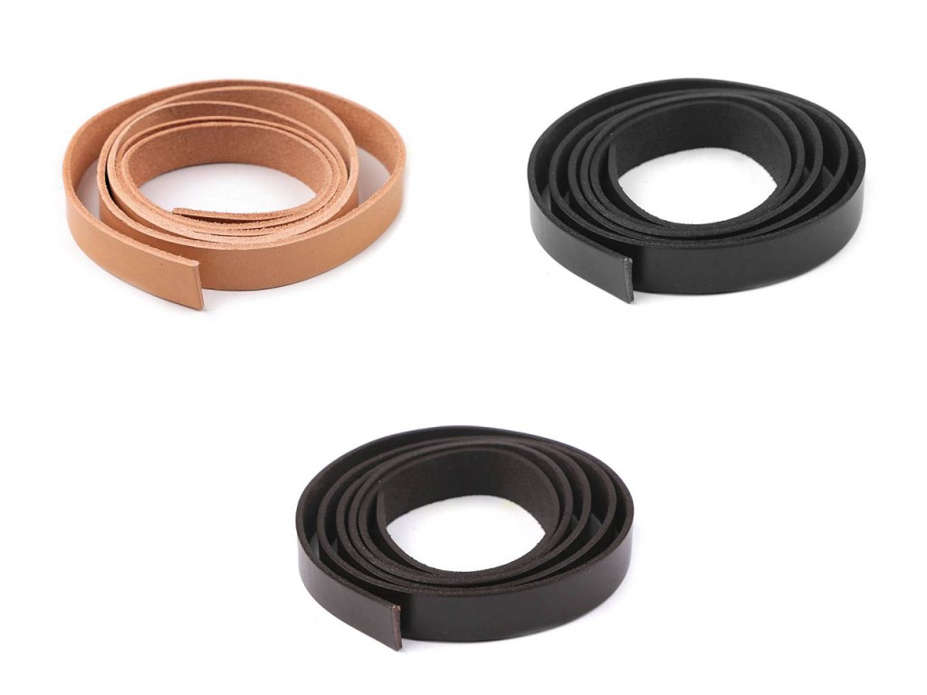 Řemínky ze 100% hovězí kůže jsou určené k výrobě uch na kabelky, tašky, peněženky, klíčenky. Jsou kvalitní a pevné. Můžete je buď přímo přišít nebo pomocí kroužků a karabinek připnout ke kabelce. Vyrobit si z nich můžete také náramek.- Šíře: 15 mm