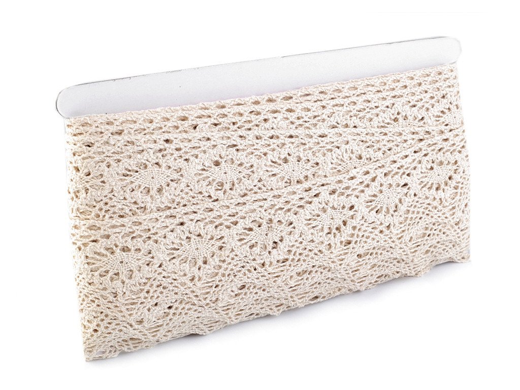 Paličkovaná krajka se zajímavým vzorem je vyrobená z bavlny. Doporučujeme ji žehlit přes tkaninu. Použití: S krajkou ozdobíte dečky nebo ubrusy. Je vhodná také k našití na polštáře či oblečení (halenky, šaty, sukně, aj.). Krajka může mít v návinu 1 prostřih. Šíře krajky se po konečné úpravě může lišit o ±6%.- Šíře: 46 mm