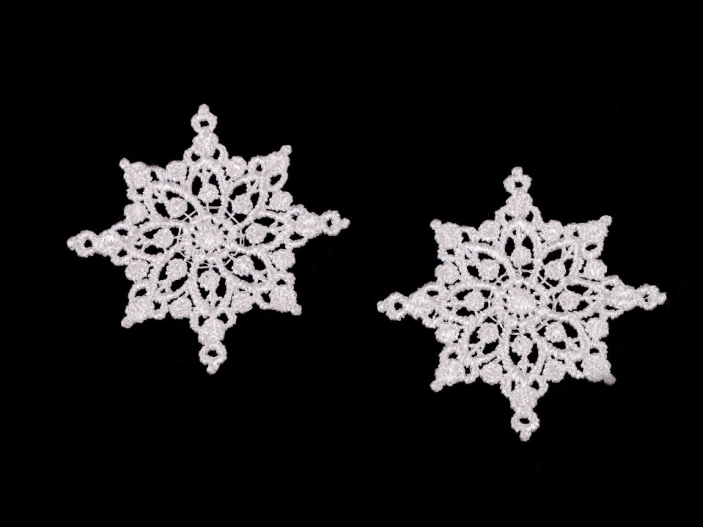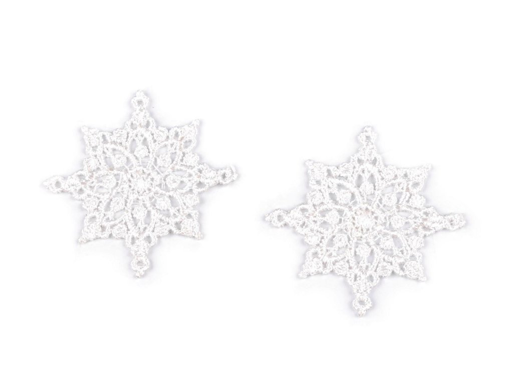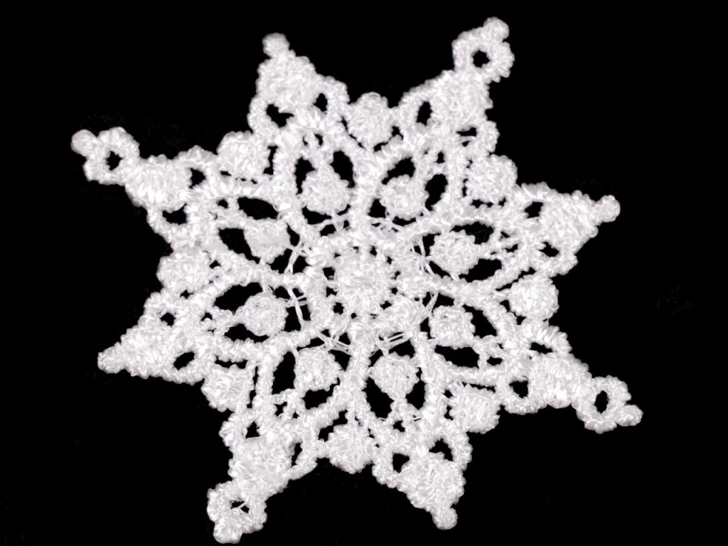 Textilní krajková vločka je velice působivá. Je oboustranná. Používá se ke zdobení oděvů, bytových doplňků, na scrapbooking a další dekorace. Po naškrobení ji můžete použít i jako ozdobu vánočního stromečku. Je skvělá i na aranžování zimních věnců a floristických aranžmá.- Průměr: 5,5 cm