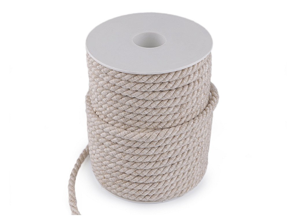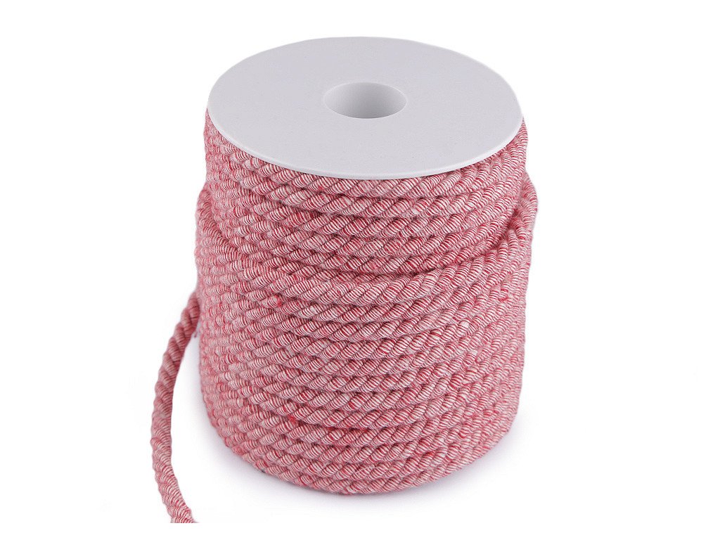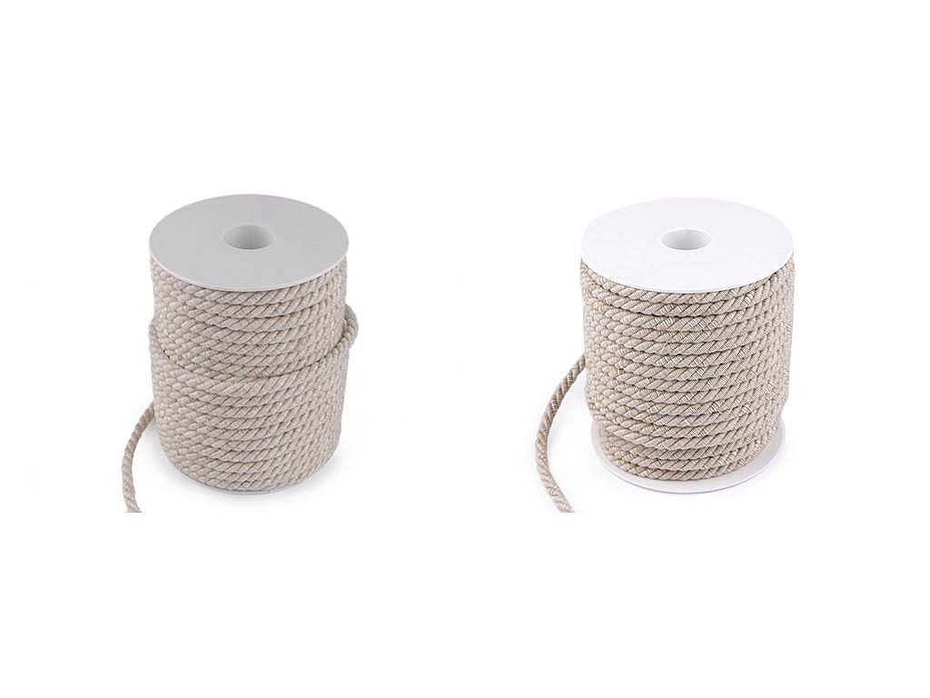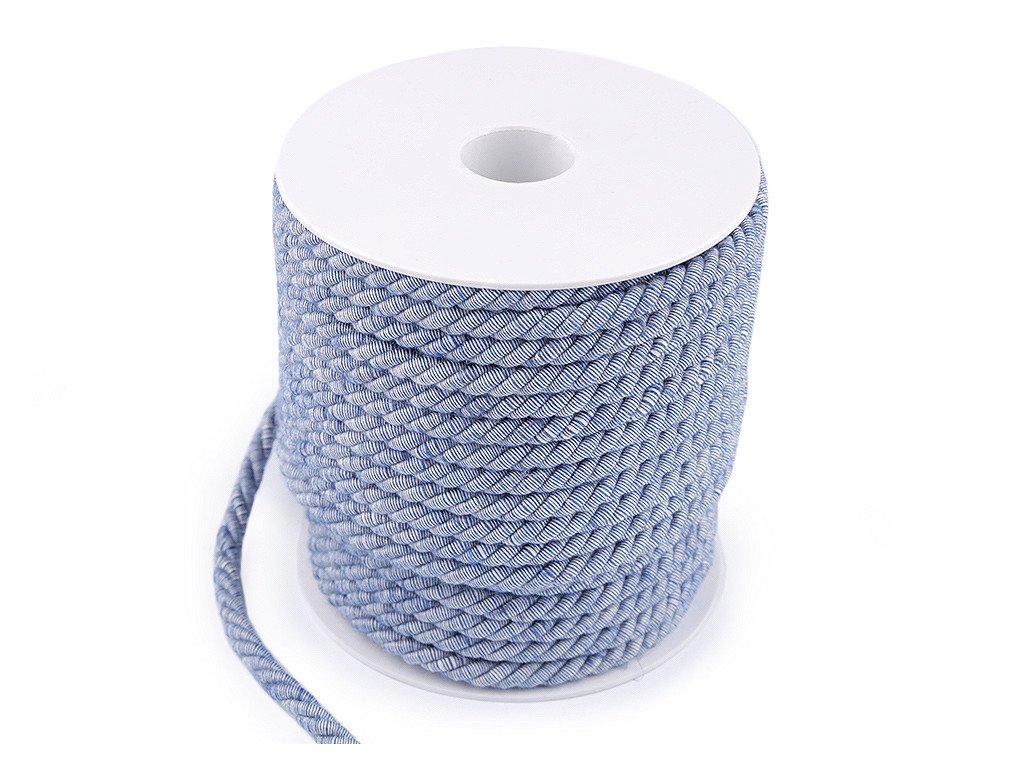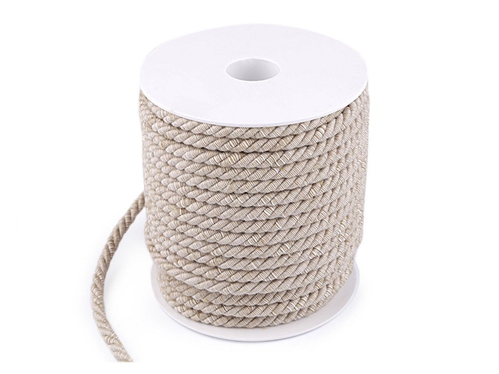 Kroucená šňůra vás zaujme svým žíhaným / melírovaným efektem. Toho je docíleno díky 2 barev nití v opletu. Šňůra je pevná, složená ze 3 provázků. Použití: Šňůru využijete v textilním průmyslu a čalounictví. Pomůže vám při výrobě kabelek nebo vaků na záda. Skvěle poslouží jako efektní opasek. Své využití najde také při výrobě šperků nebo jako dekorační či funkční materiál bytových doplňků. Vyrobeno v Itálii.- Průměr: cca 6 mm