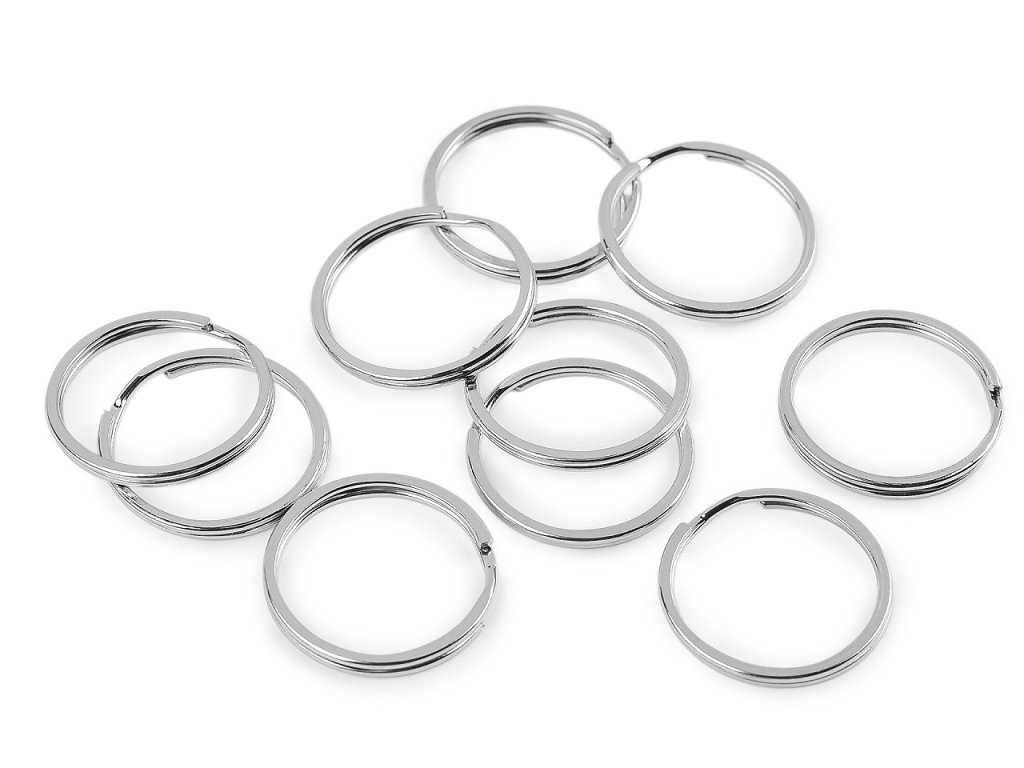 Plochý kovový kroužek využijete k výrobě klíčenek nebo k zavěšení různých ozdob a přívěsků na tašky či kabelky.- Vnější průměr: 25 mm