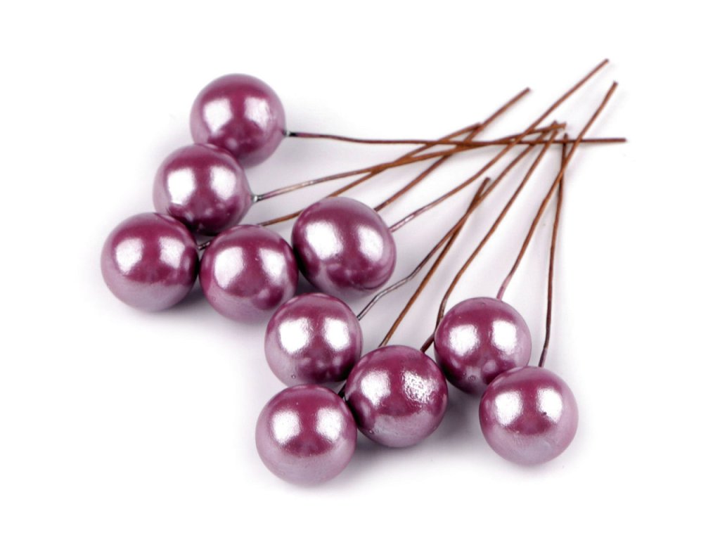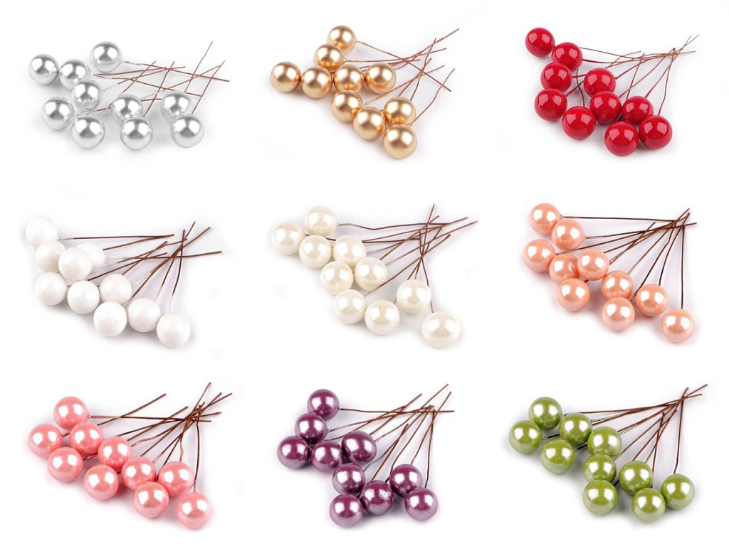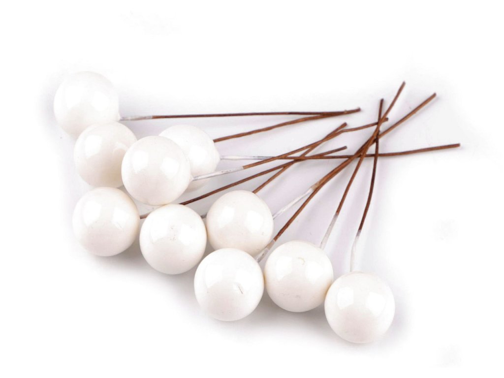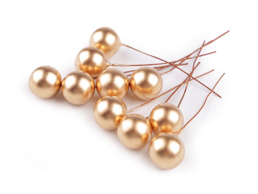 Dekorační kuličky jsou připevněné k ohebnému floristickému drátku. Vyniknou zakomponované ve vánočních vazbách, věncích, truhlících a různých dekoracích.