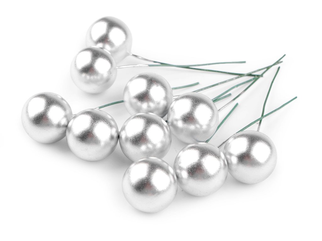 Dekorační kuličky vyniknou zakomponované ve vánočních vazbách, věncích, truhlících a různých dekoracích. Jsou připevněné k ohebnému floristickému drátku.- Průměr: 2 cm