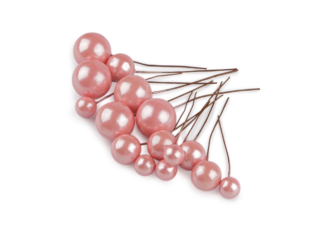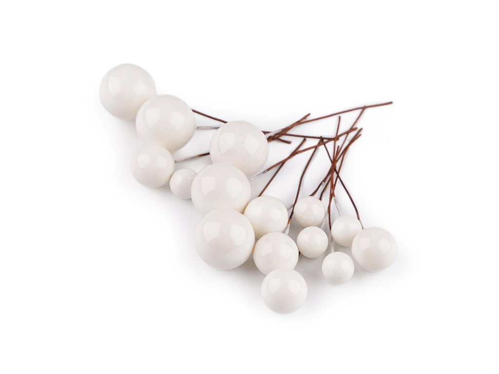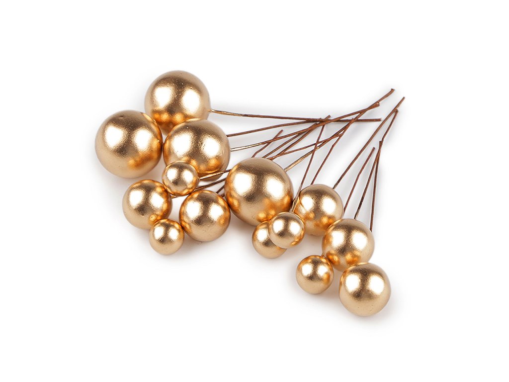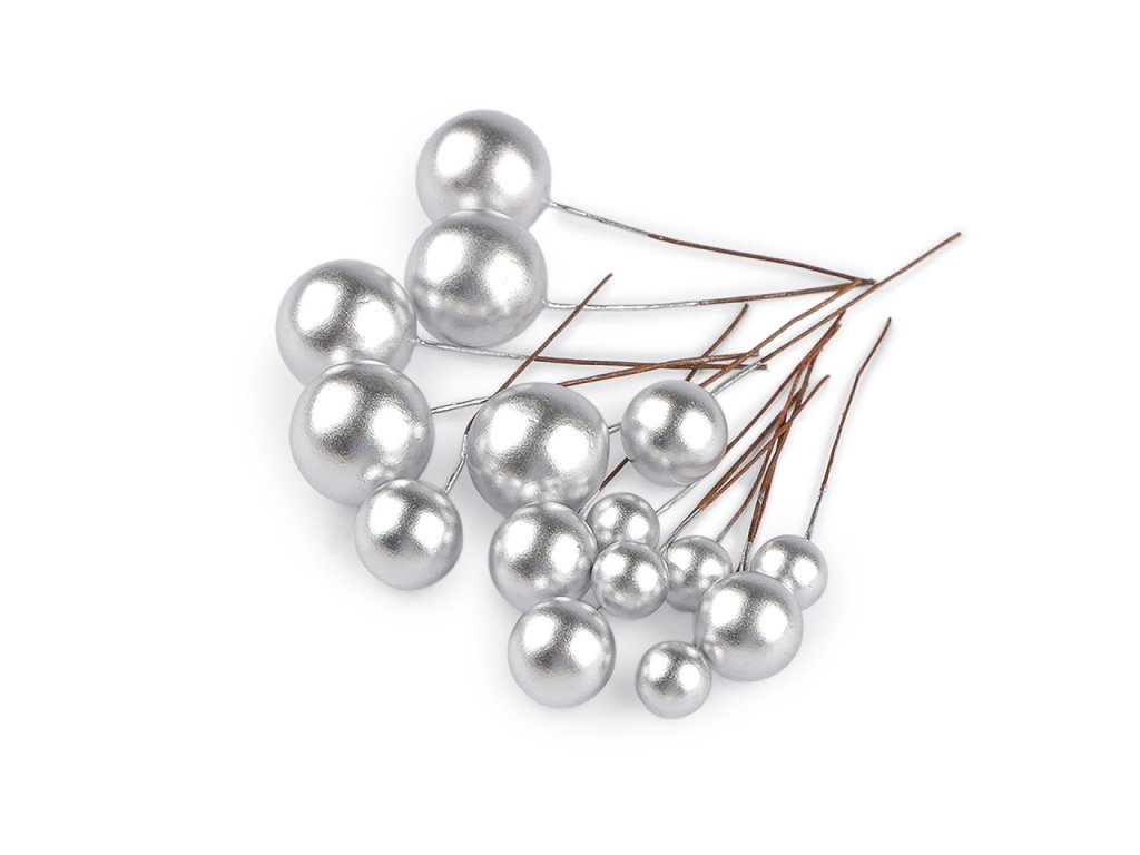 Dekorační kuličky jsou připevněné k ohebnému floristickému drátku. Vyniknou zakomponované v květinových vazbách, věncích, truhlících a různých dekoracích.- Průměr: 1; 1,5; 2 cm