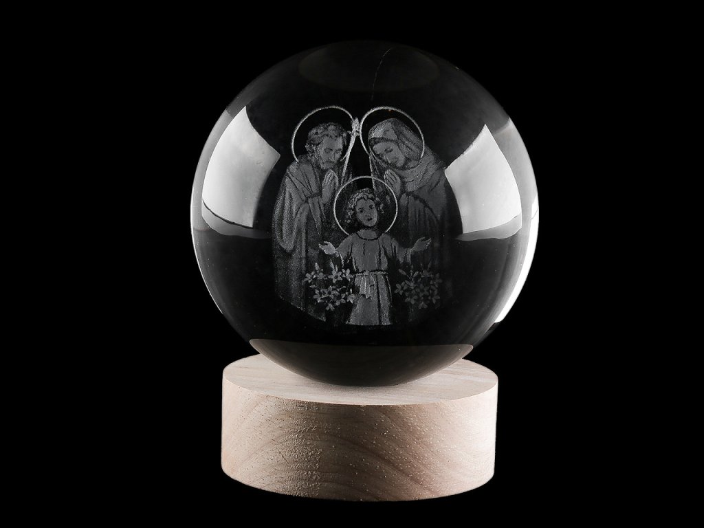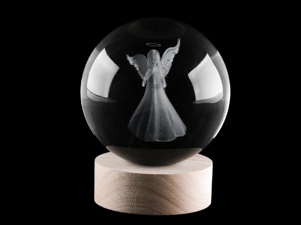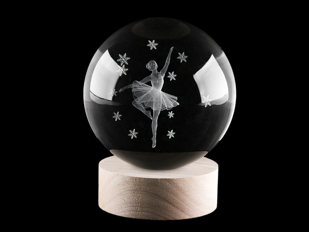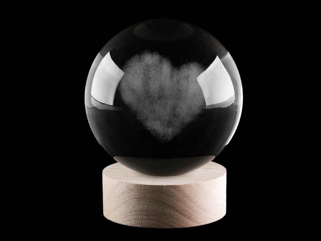 Svítící LED skleněná koule vnese klidnou a pohodovou atmosféru do každého interiéru. Světlo je v příjemném teplém odstínu, tlumené. Uvnitř koule najdete různé laserově gravírované 3D motivy, které díky světlu vyniknou v celé své kráse. Koule má stabilní dřevěný podstavec, ale není k němu pevně připevněná. Špatnou manipulací hrozí, že může spadnout. Dekorace je na 3 ks AAA baterií, které nejsou součástí balení. Průměr podstavce je 8 cm, jeho výška je 2,7 cm.- Průměr: 10 cm