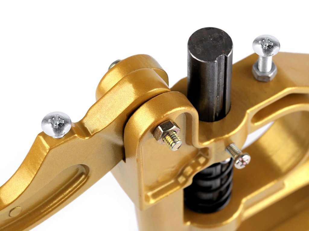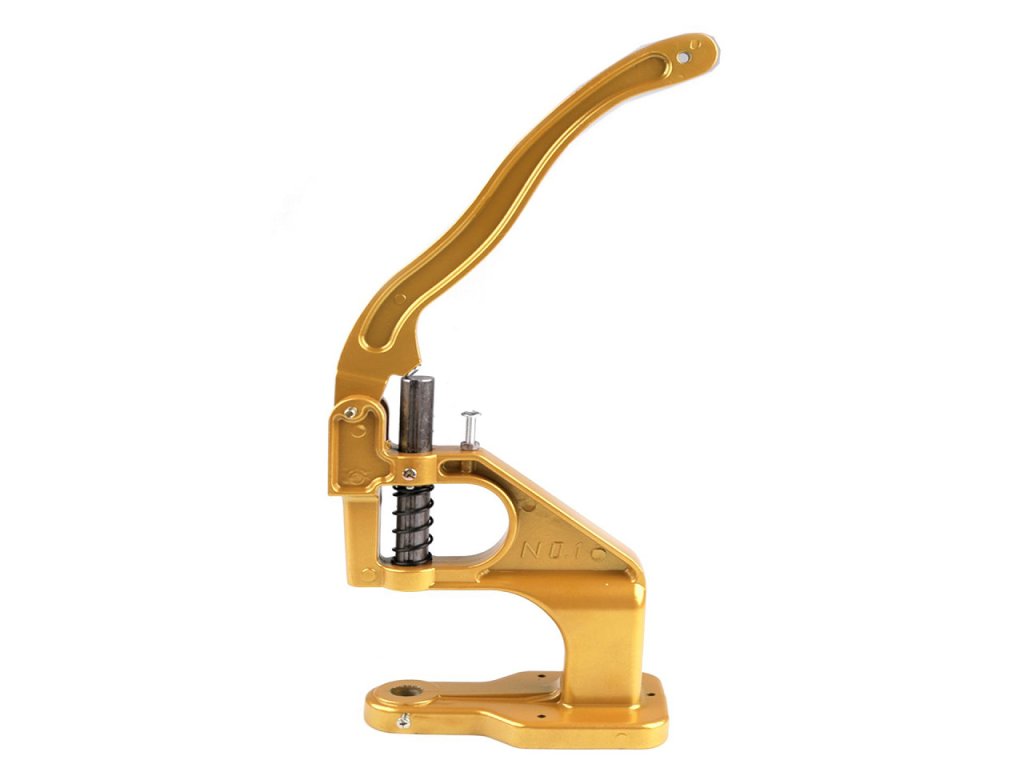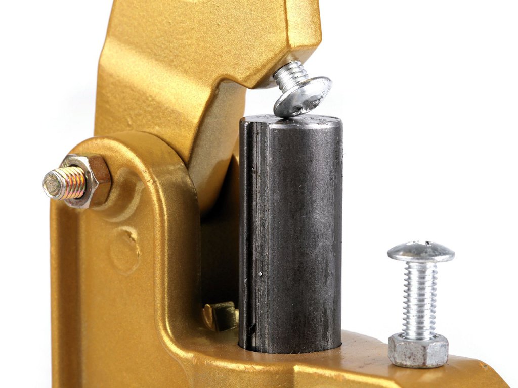 Lis má široké uplatnění. Využijete jej k nýtování knoflíků, sedlářských nýtů a dalších komponentů určených k nýtování. Má nízkou hmotnost. K lisu je třeba zakoupit vhodné pistony se závitem M8. Lis je nutné přišroubovat k pevné podložce, šroubky nejsou součástí balení. Rozměry viz foto. Rozměry dolní části (podstavce) jsou 9 x 17,5 cm. Přítlačná páka má ze spodní strany nastavitelný šroub, kterým si lze prodloužit píst a přizpůsobit ho délce pistonu.- Průměr otvoru: 18,9 mm