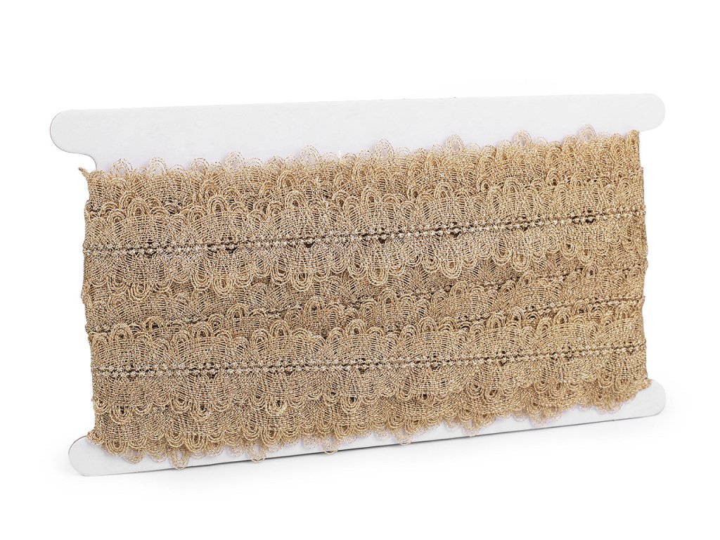 Lurexový prýmek je na dotek jemný, připomíná paličkovanou krajku. Nádherně vynikne na večerních, plesových a společenských šatech. Můžete s ním ozdobit i psaníčka, kabelky či saka.- Šíře: 33 mm