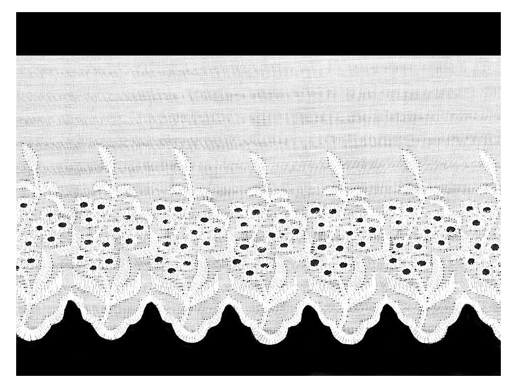 Madeiru můžete použít na zdobení oblečení (šatů, halenek, lehkých sukní a prádla). Využijete ji i jako dekoraci bytového textilu například polštářů, povlečení, deček, ubrusů, kuchyňských záclonek nebo dětských zavinovaček. Šíře nevyšité části se může mírně lišit (±10%).- Šíře: č. 1: 10,5 cm