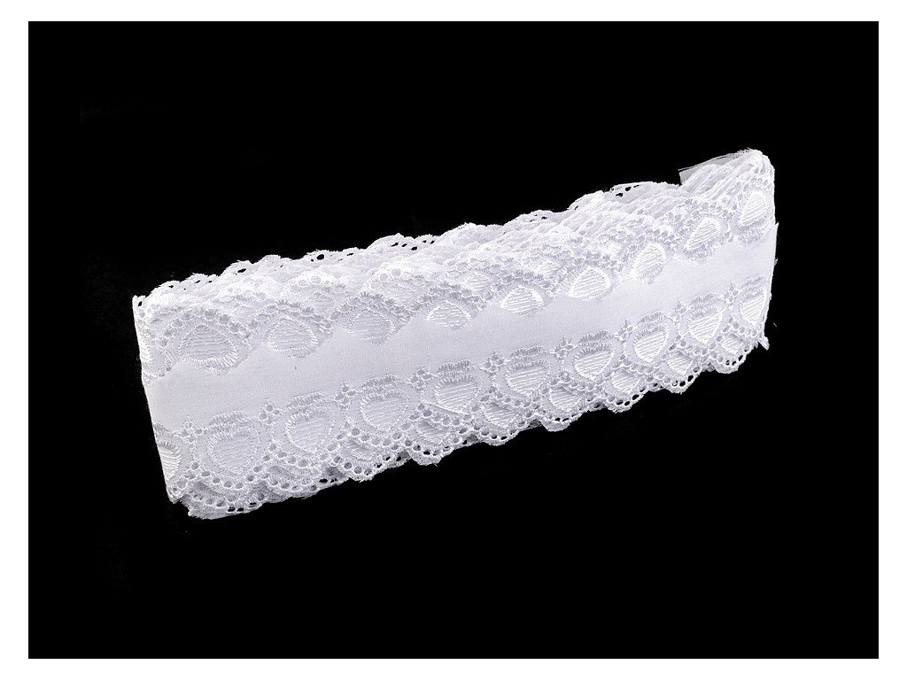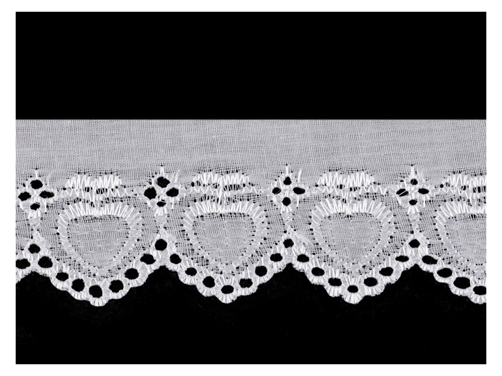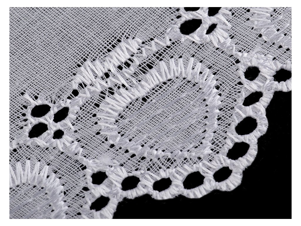 Madeira má romantický vzor se srdíčky. Okraj zakončují obloučky. Použití: Madeirou můžete ozdobit oblečení (šaty, halenky, lehké sukně a prádlo). Často se používá i jako dekorace bytového textilu například polštářů, povlečení, deček, ubrusů, kuchyňských záclonek nebo dětských zavinovaček. Šíře nevyšité části se může mírně lišit (±10%).- Šíře: 60 mm