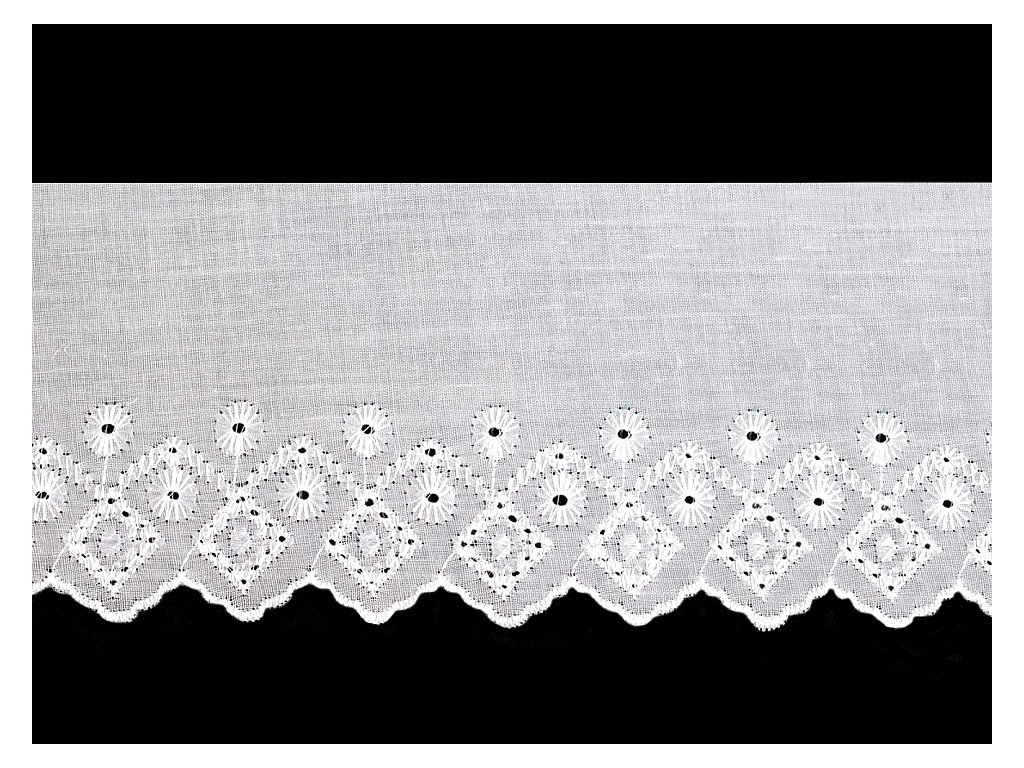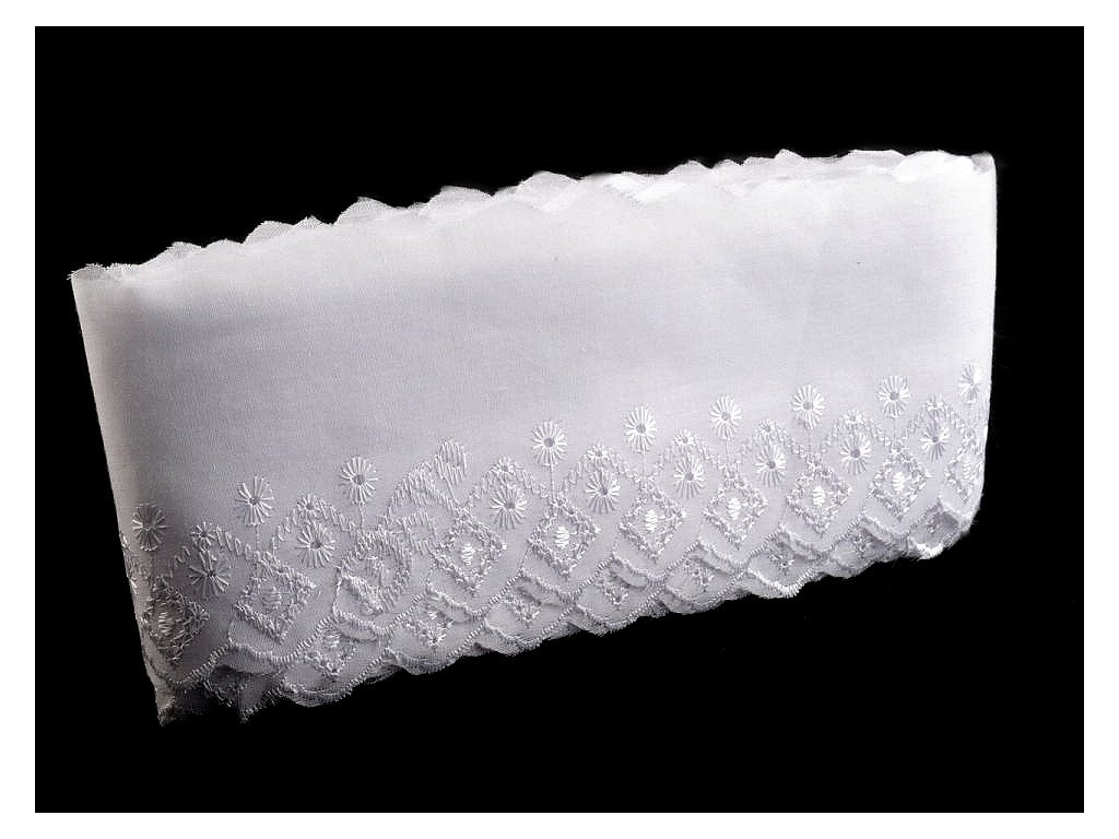 Madeiru zdobí designový motiv s lesklou dírkovou výšivkou. Je vhodná na zdobení oděvů i bytového textilu, například polštářů, povlečení, ubrusů, záclonek apod. Často se používá i jako ozdoba dětských zavinovaček.