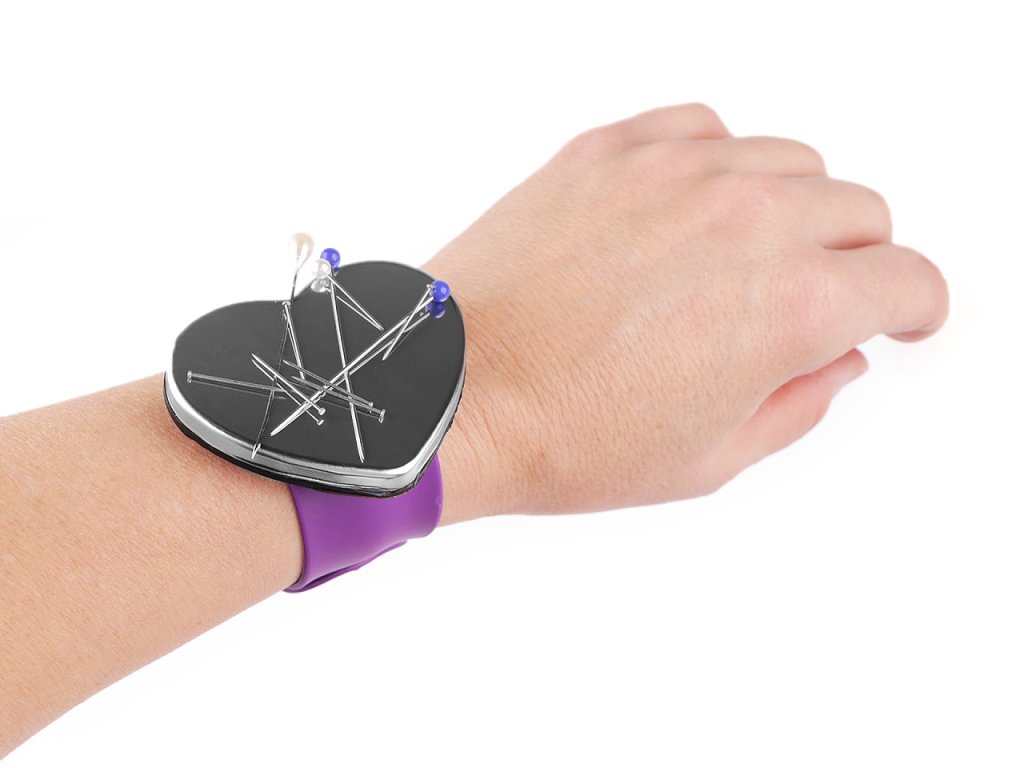 Magnetický jehelníček je skvělým pomocníkem pro každého, kdo rád šije, jelikož dokáže usnadnit a zefektivnit práci. Silikonový náramek na ruku je flexibilní a samonavíjecí. Magnetická destička na náramku je posuvná.