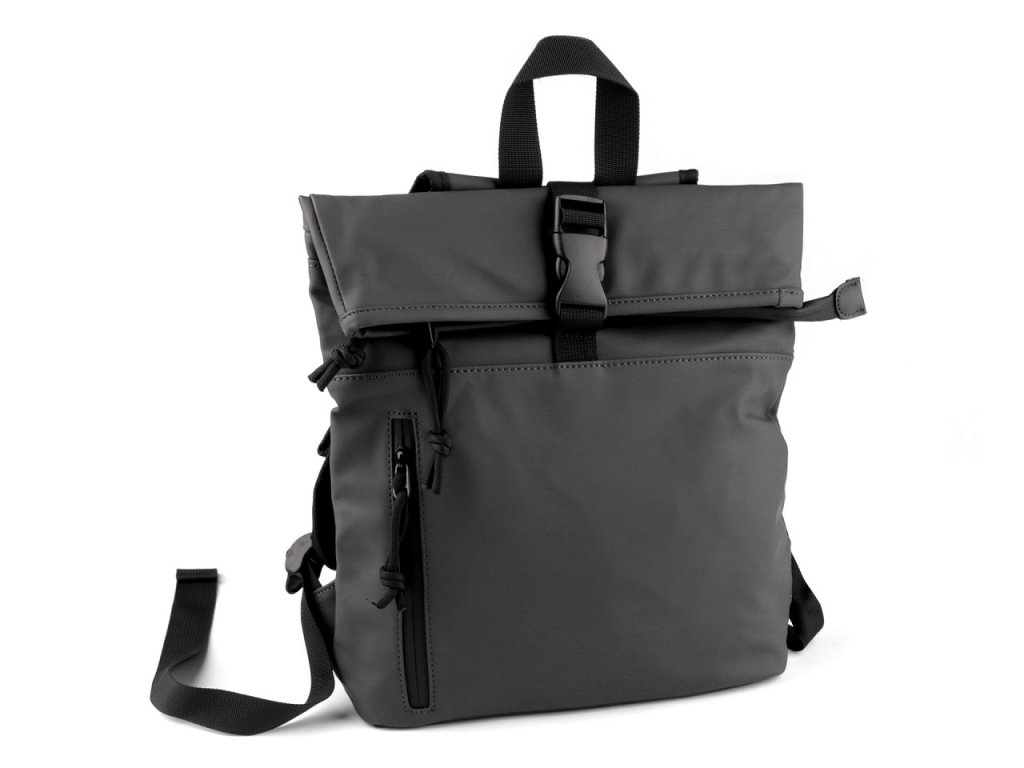 Vodotěsný rolovací batoh je ideálním společníkem pro každodenní používání i výlety. Má pogumovaný, nepromokavý povrch, který zaručuje snadnou údržbu. Součástí jsou i vodotěsné zipy. Stylový design s čistými liniemi a praktickým rolovacím vrškem poskytuje dostatek flexibility pro uložení vašich věcí. Batoh se uzavírá na zip a popruh s karabinou. Uvnitř má praktické kapsy, jedna se uzavírá na zip. Další kapsy na zip jsou na přední i zadní straně batohu. Nahoře má batoh praktické poutko na pověšení. Součástí jsou polstrované nastavitelné popruhy s plynulou regulací délky.- Rozměry (ŠxVxH): 36 x 37 x 12 cm