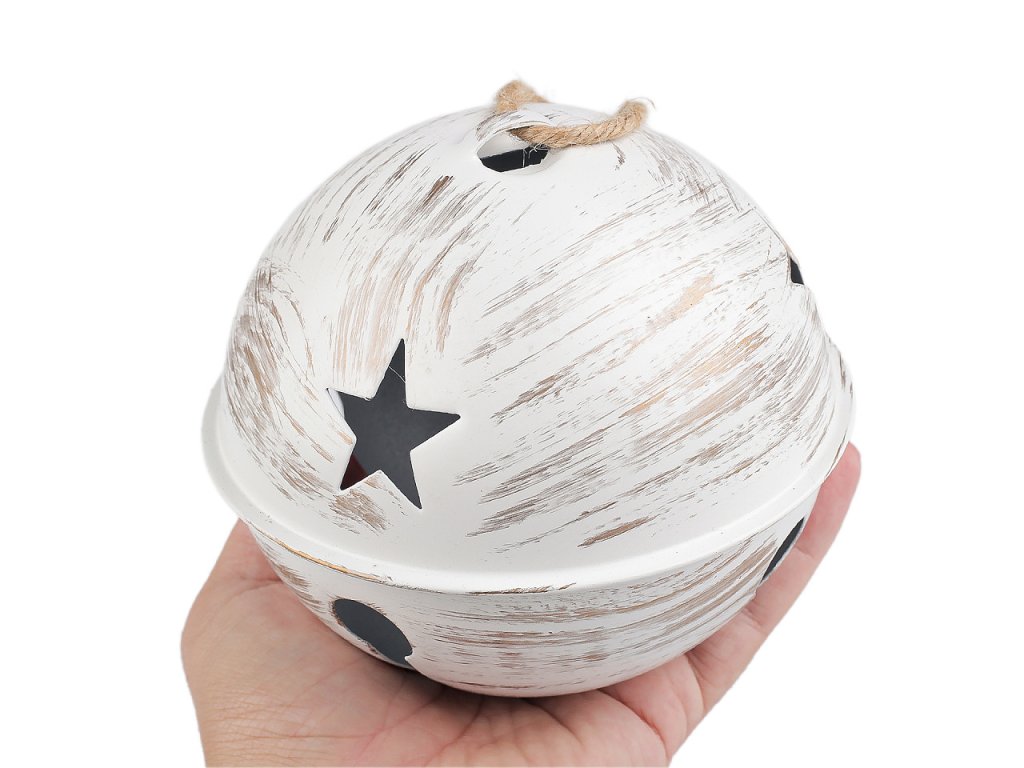 Nadrozměrná rolnička a zvon jsou vhodné do výloh, velkých obchodních domů a prostorných místností. Mají jemně patinovaný povrch, který jim dodává nádech vintage stylu. Jejich cinkání je hlasité. Rolnička i zvon jsou vybavené poutkem, které umožňuje jejich snadné upevnění kdekoliv.- Průměr: č. 1: 14 cm